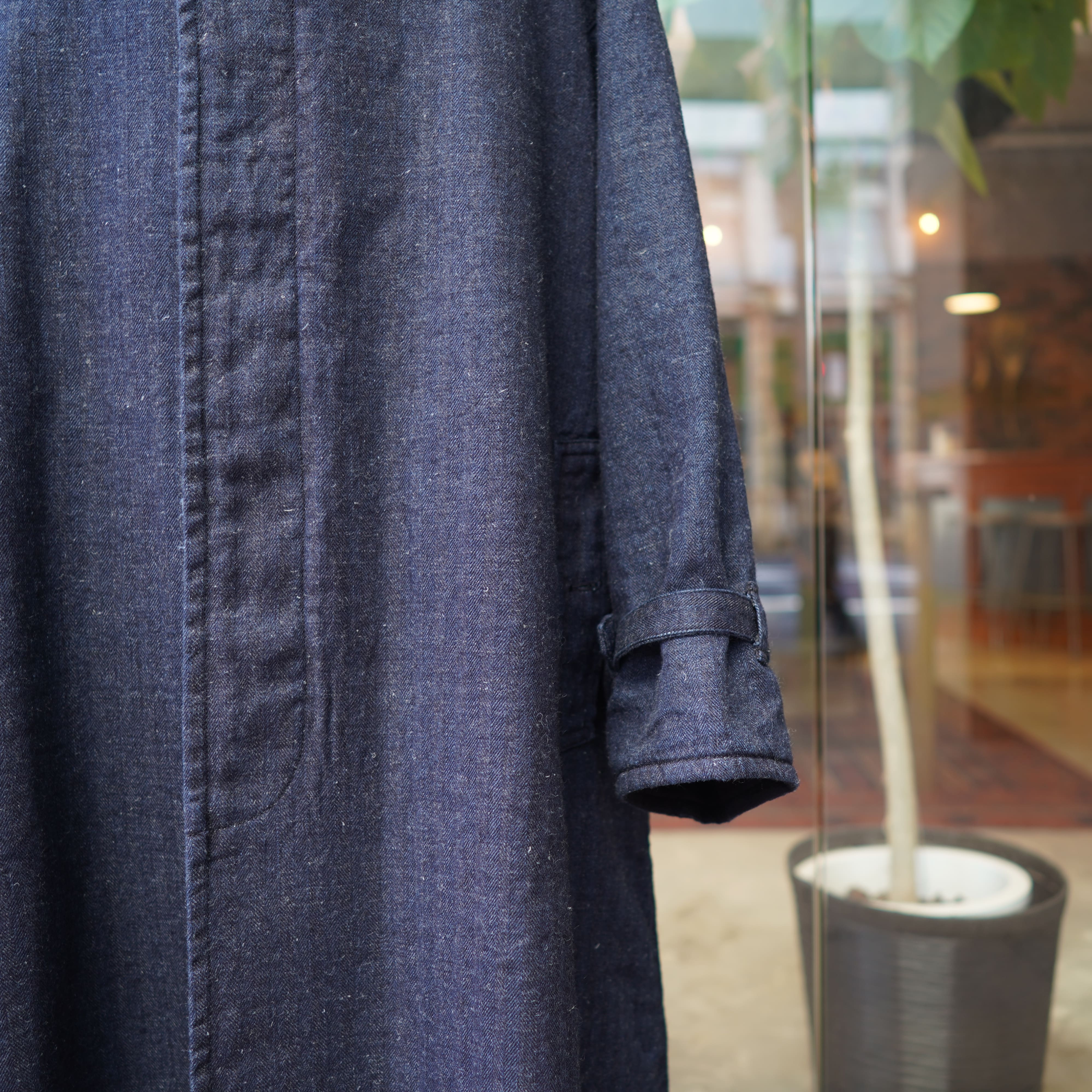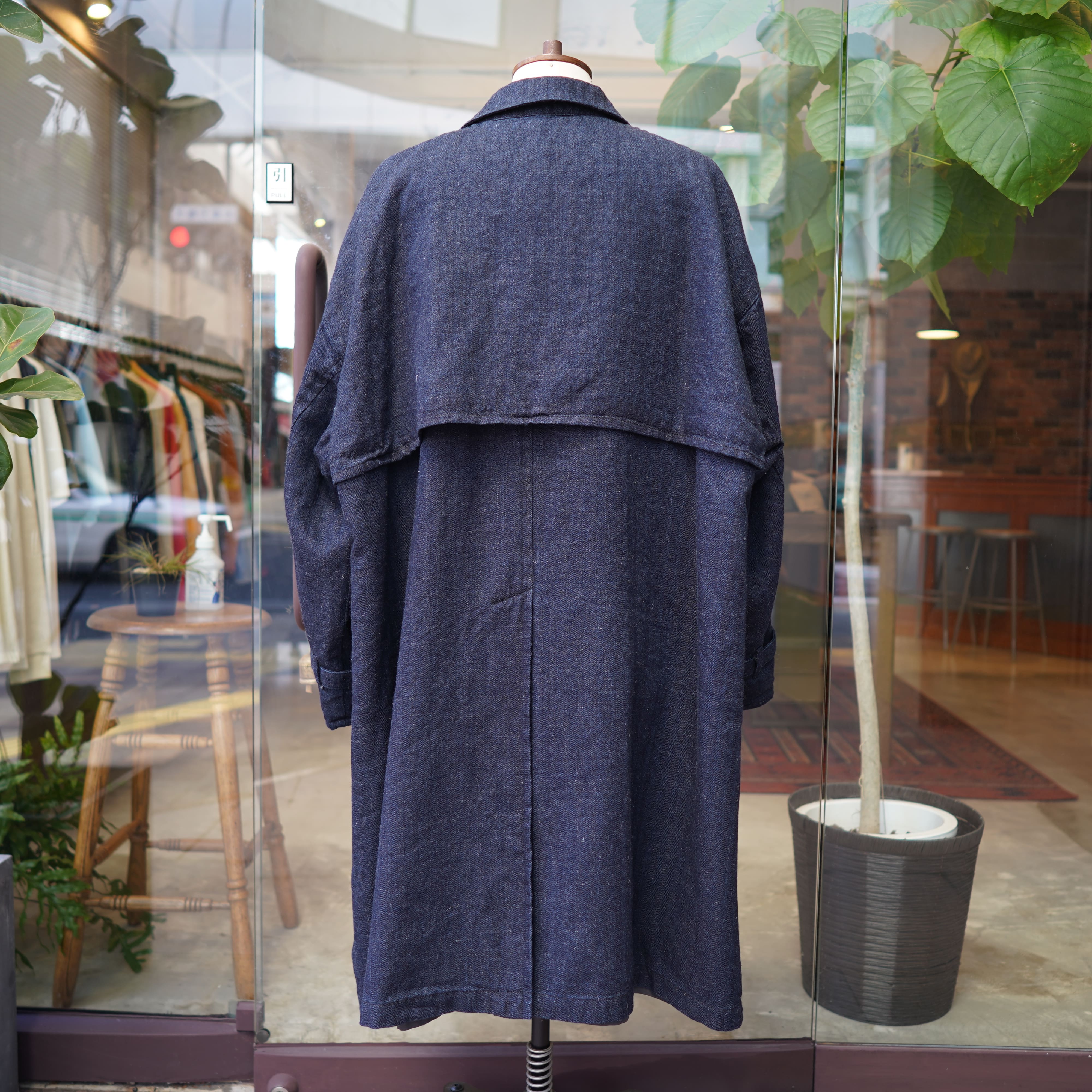 リネンの目の詰まったコート特有の重厚感はヴィンテージの洋服を彷彿とさせる着用感。
