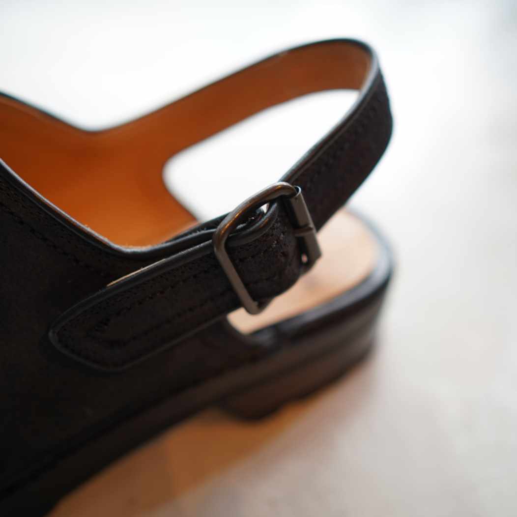 同じ牛革ですが、バケッタレザーに加工を加えたモデルでスウェードの様な見た目が特徴です。トウの艶感がさりげなく良い味を出してます。