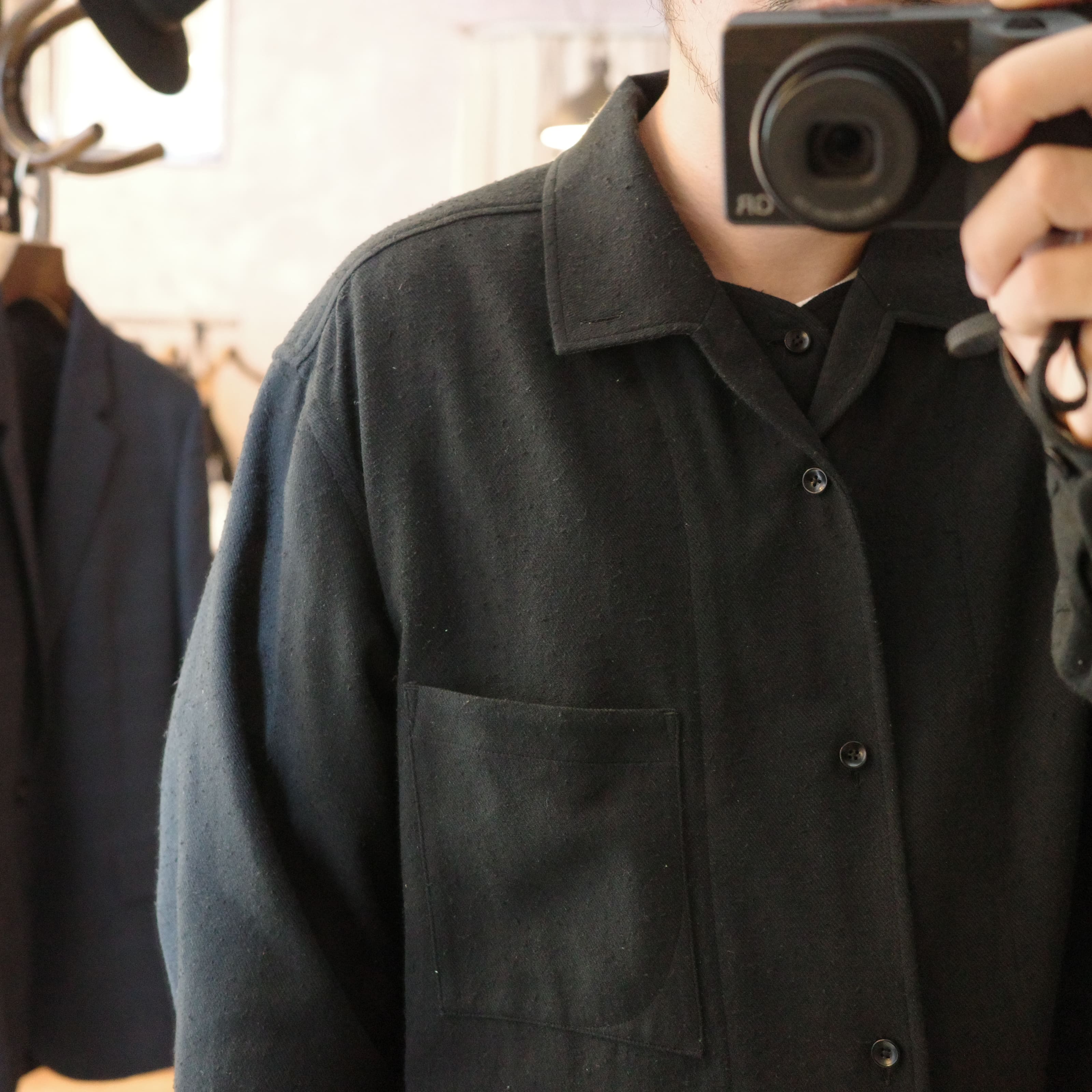 ゴーシュの作る洋服は一見すると当店もメインで取り扱っているHERILLやA.PRESSEとは相性があまり良くないテイストにも感じるかもしれません。しかし、洋服単体で見た時の生地との相性、シルエットだけを見た時のバランスの良さなどはブランド問わずに相性は良いです。実際今回紹介したゴーシュのシャツには全てHERILLのパンツを合わせています。