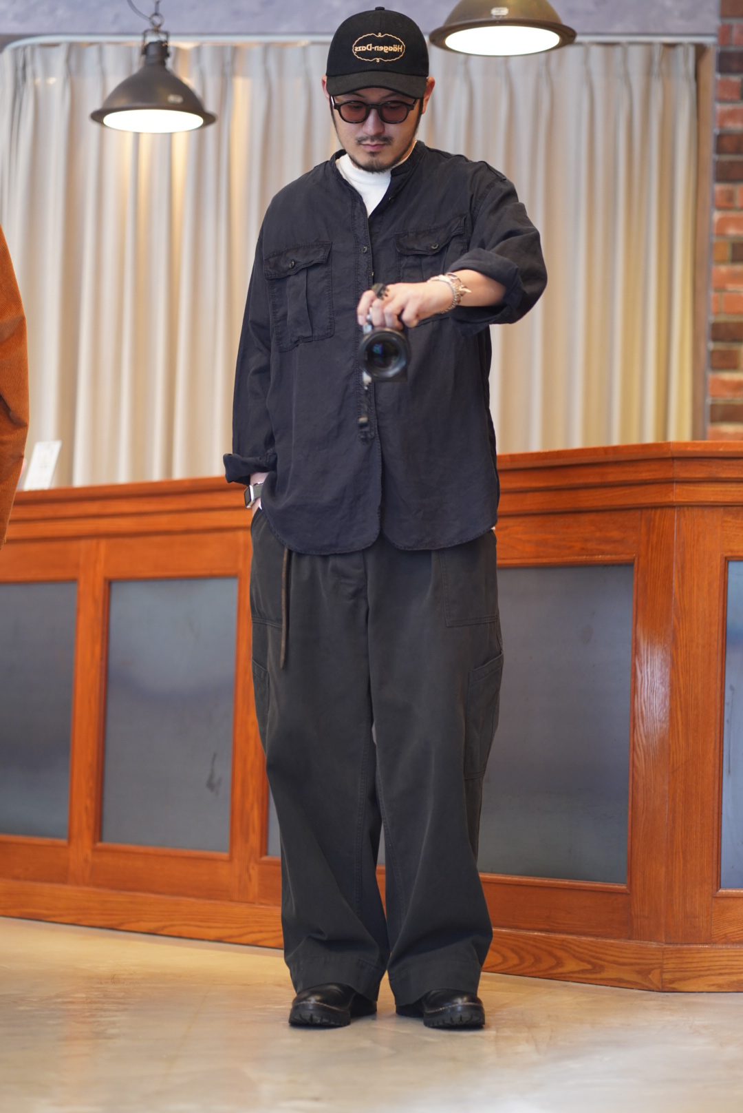 着ていてずっしりと重みは感じるけど真夏でも暑さを感じないリネン。何度も染めてブラックに近い色味に仕上げたインディゴは数ヶ月後の色の変化が楽しみで仕方ありません。