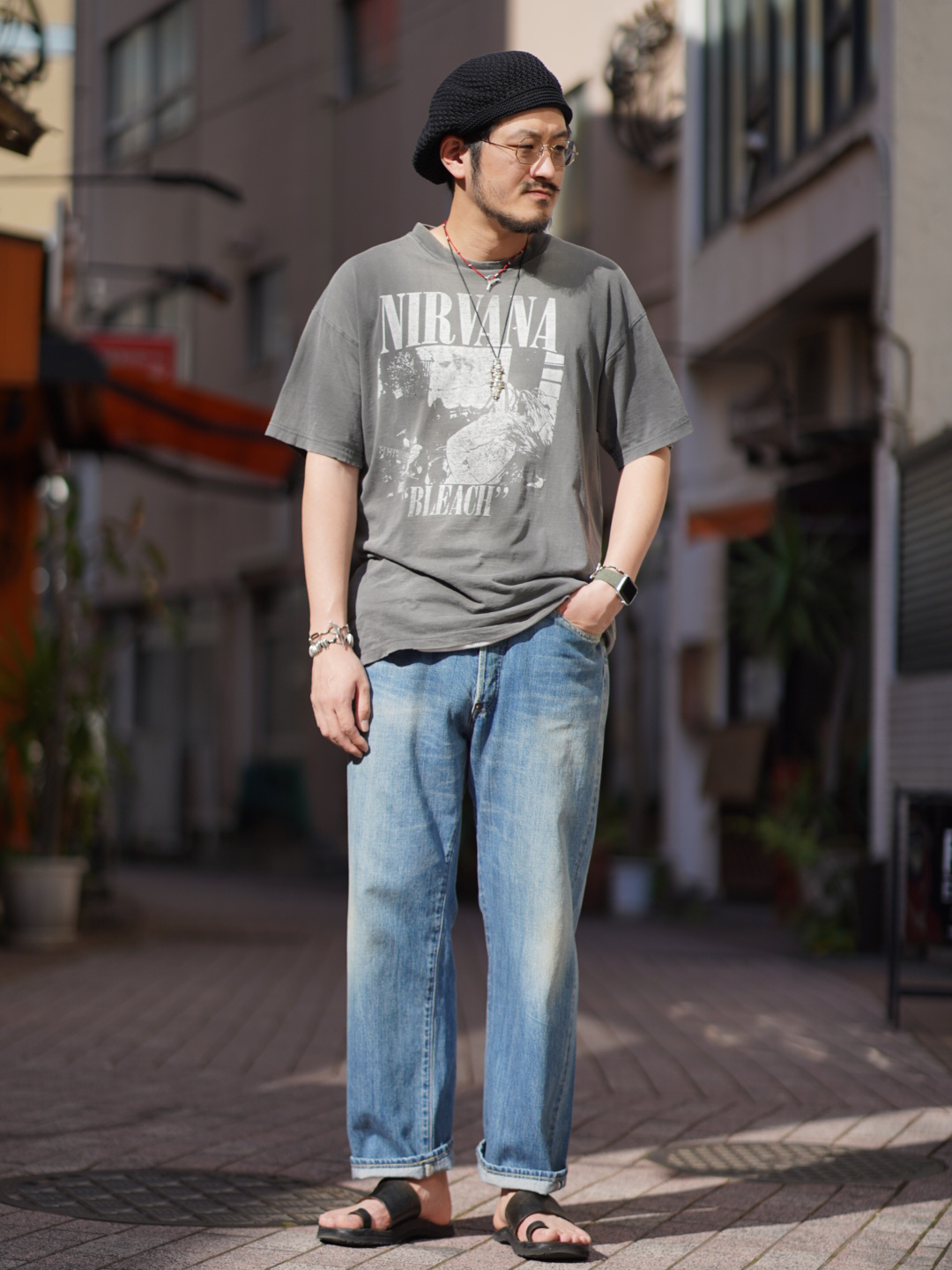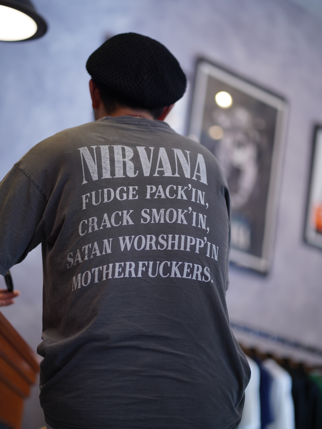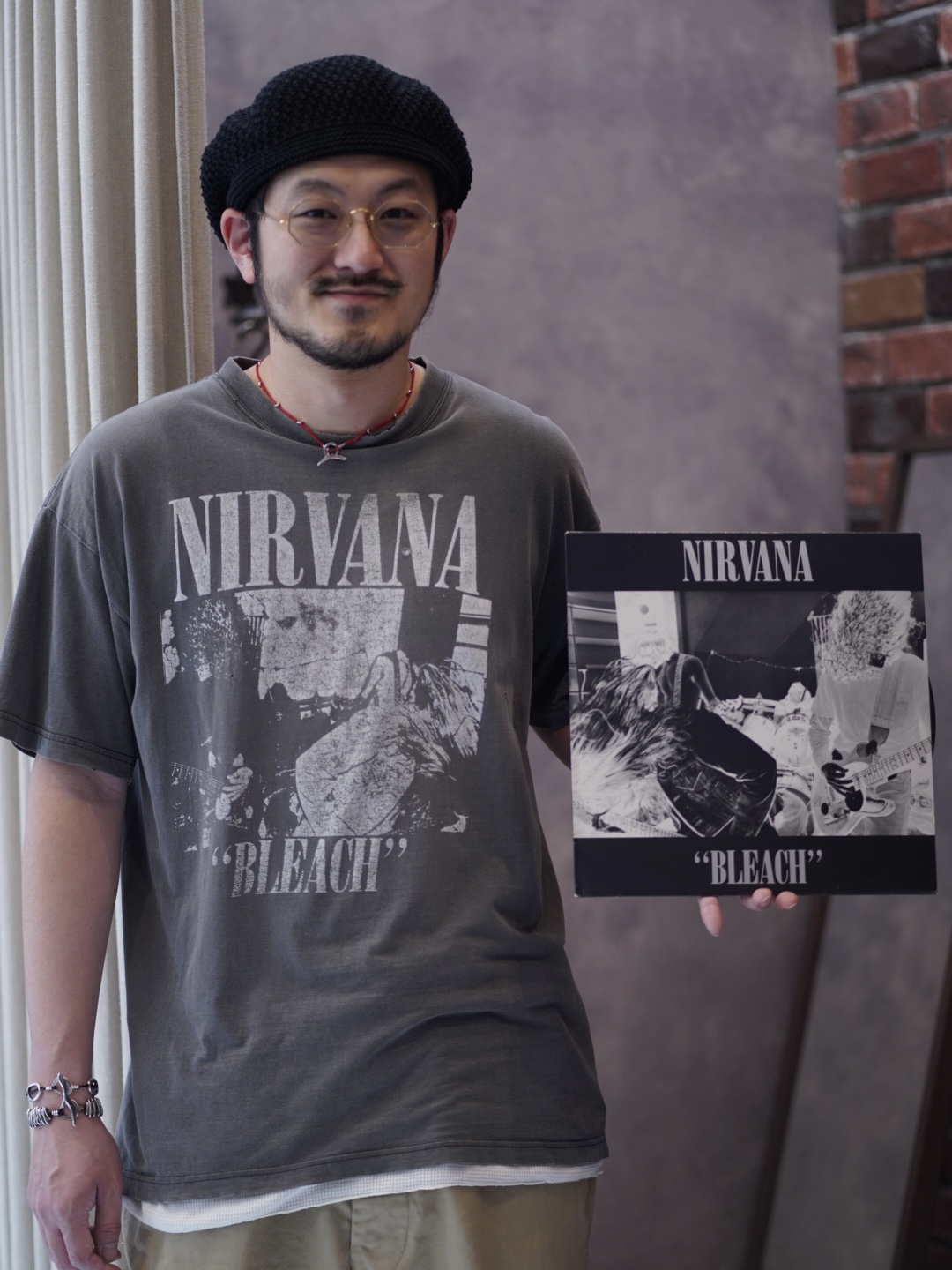 その中でもメジャーデビューする前にリリースされた”BLEACH”のジャケットのTシャツはおそらくNIRVANA好きなら誰しもが手にしたいと思っている1枚かと。