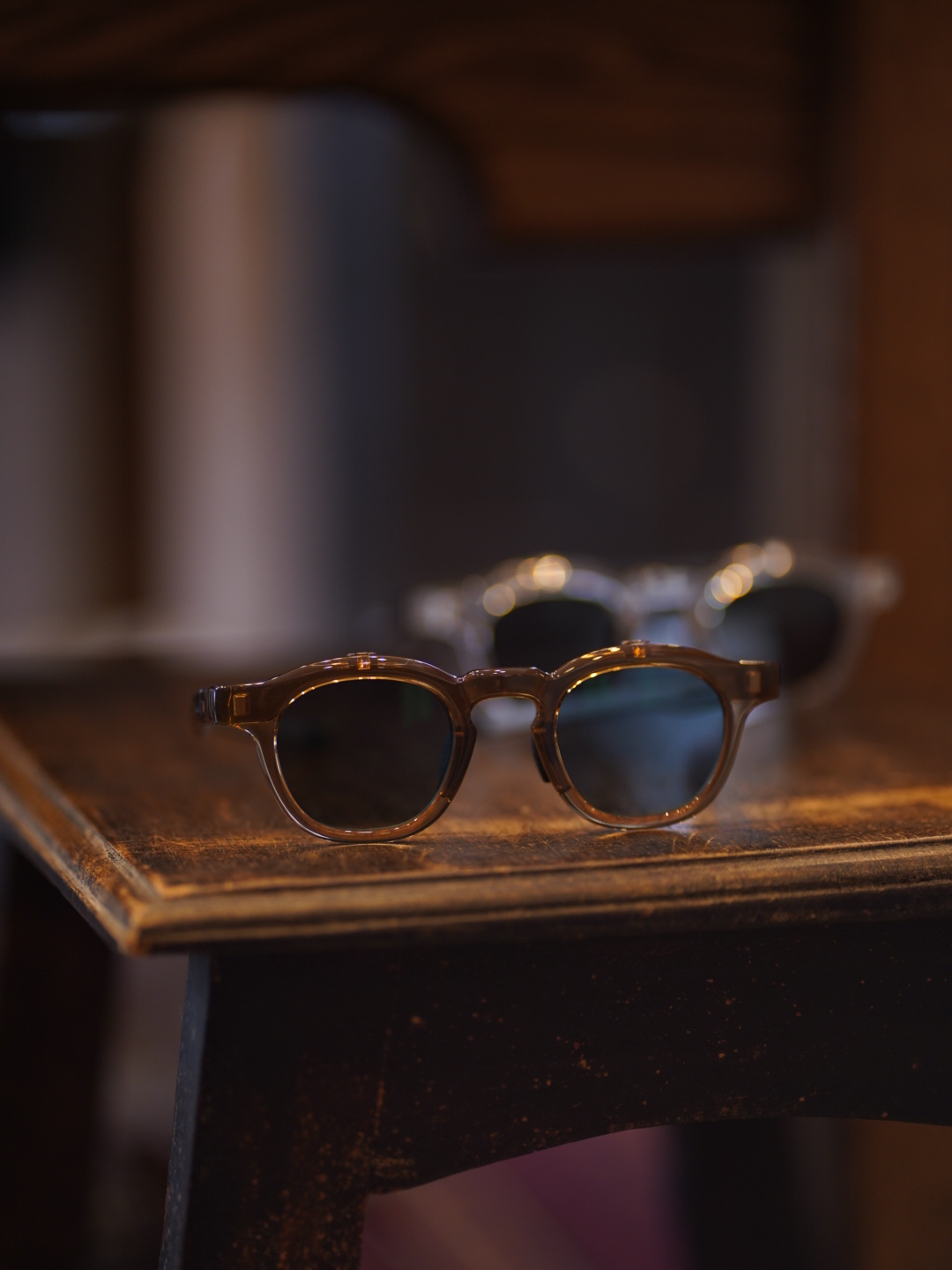 今気分な人も多いであろう、クリアフレームにLIGHT BROWNのレンズ。