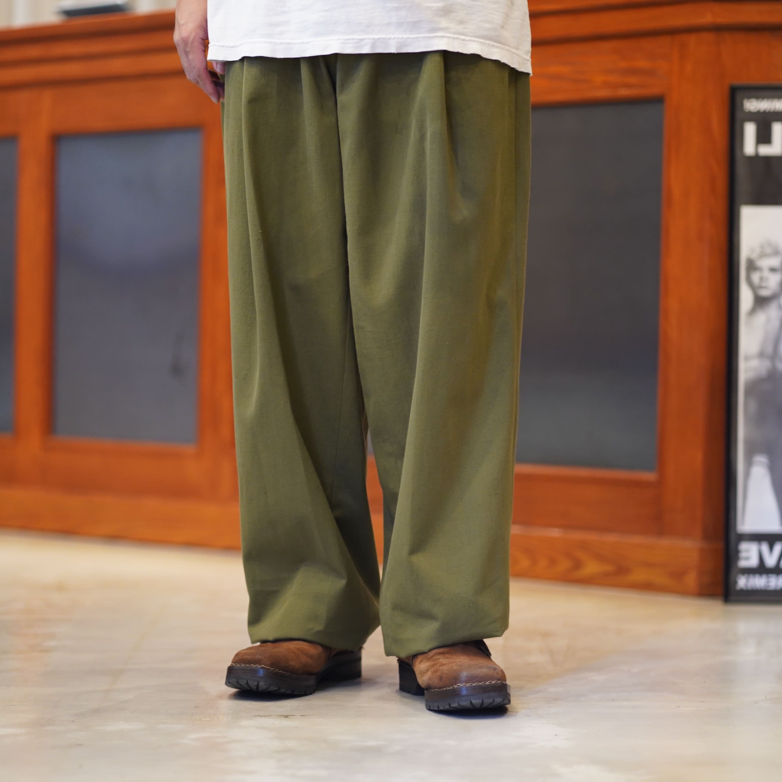 サイズスペックだけを見ると大体の方がサイズ1を選びそうですが、普段のサイズ選びでこのぐらいのシルエットで穿くのもオススメです。