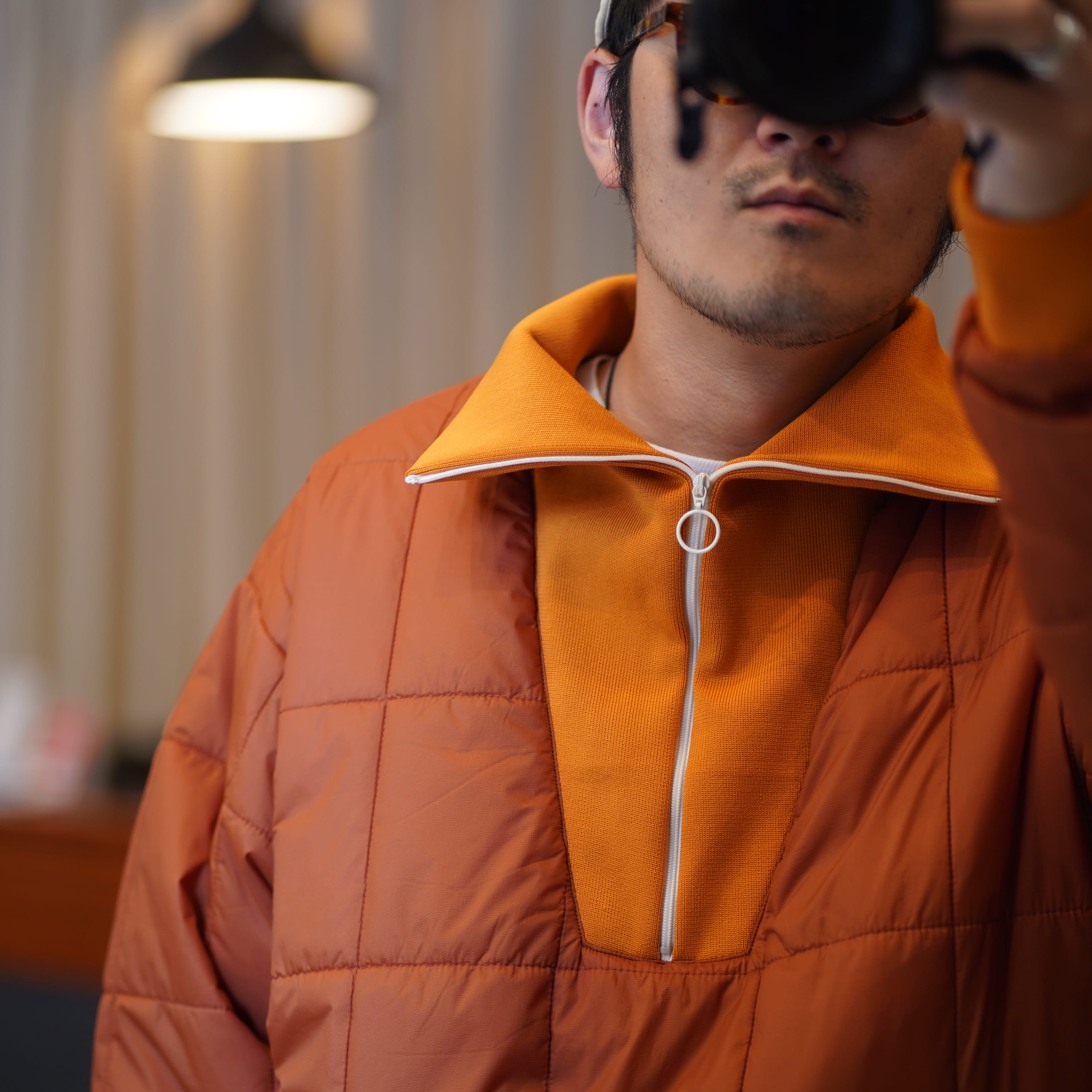 落ち着いたトーンのオレンジに発色の良いオレンジのリブとのコンビがとても相性が良い。
