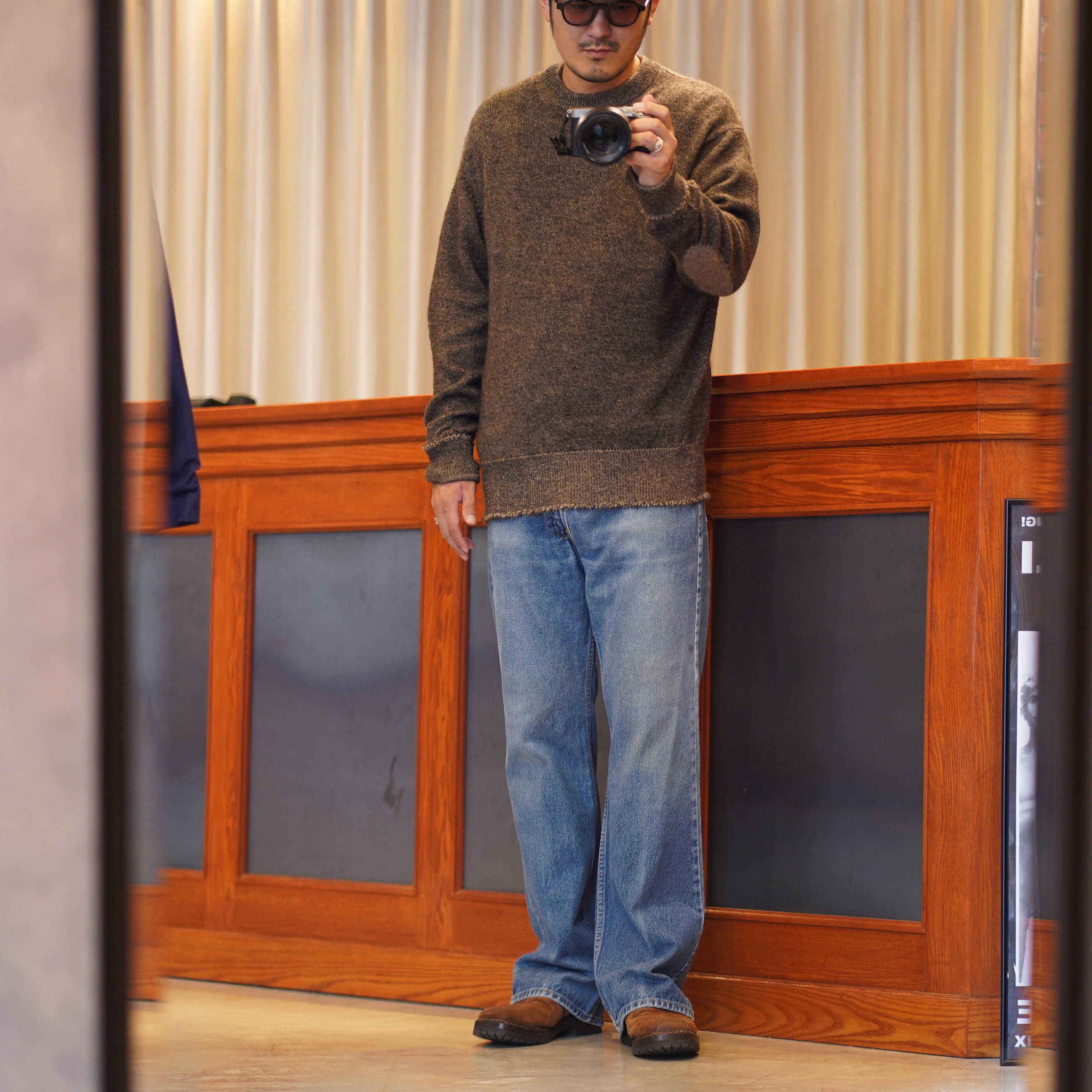 また、懲りずにHERILLのパンツを合わせるところでしたが、今回は気分を変えて先日入荷したリーバイス517を穿いてみました。