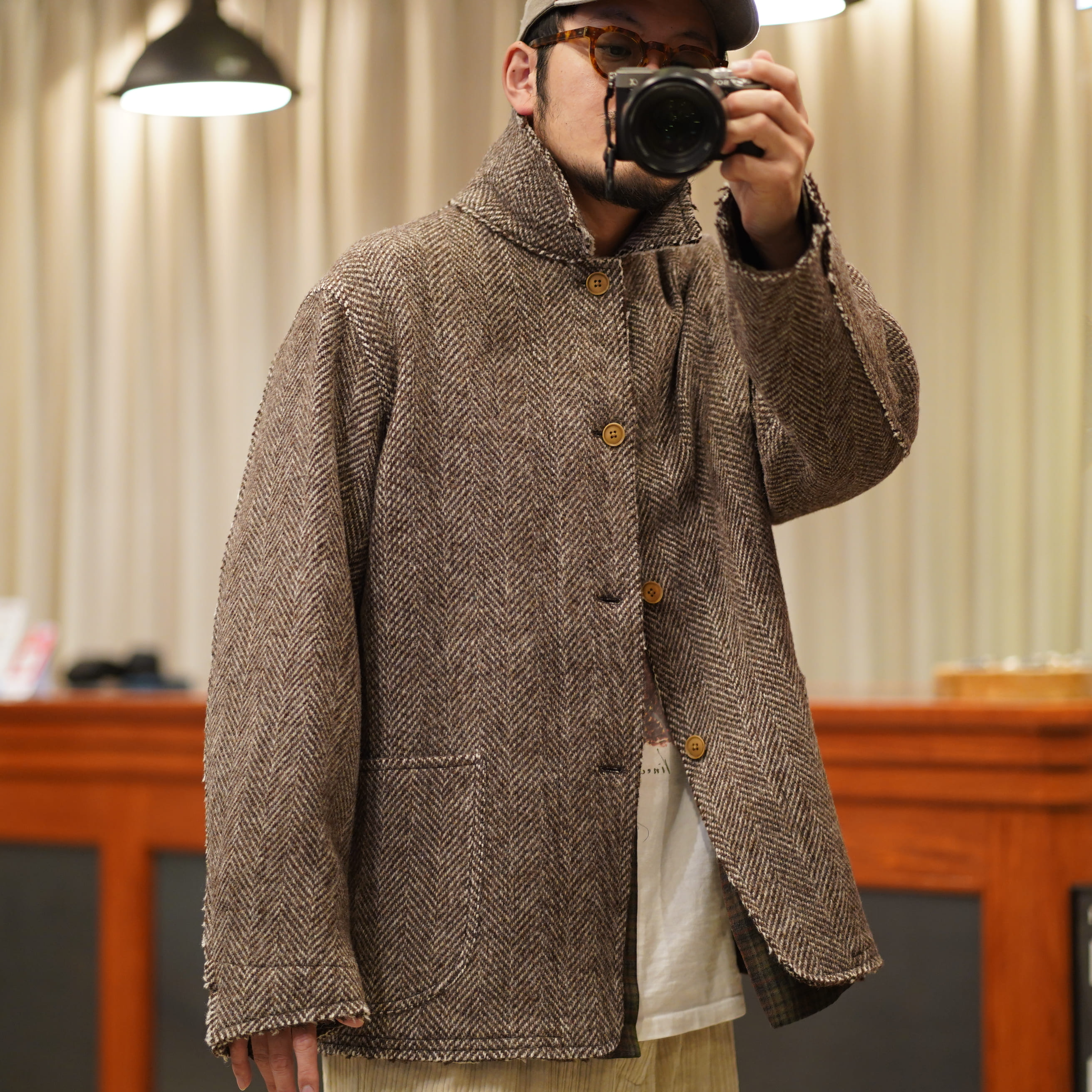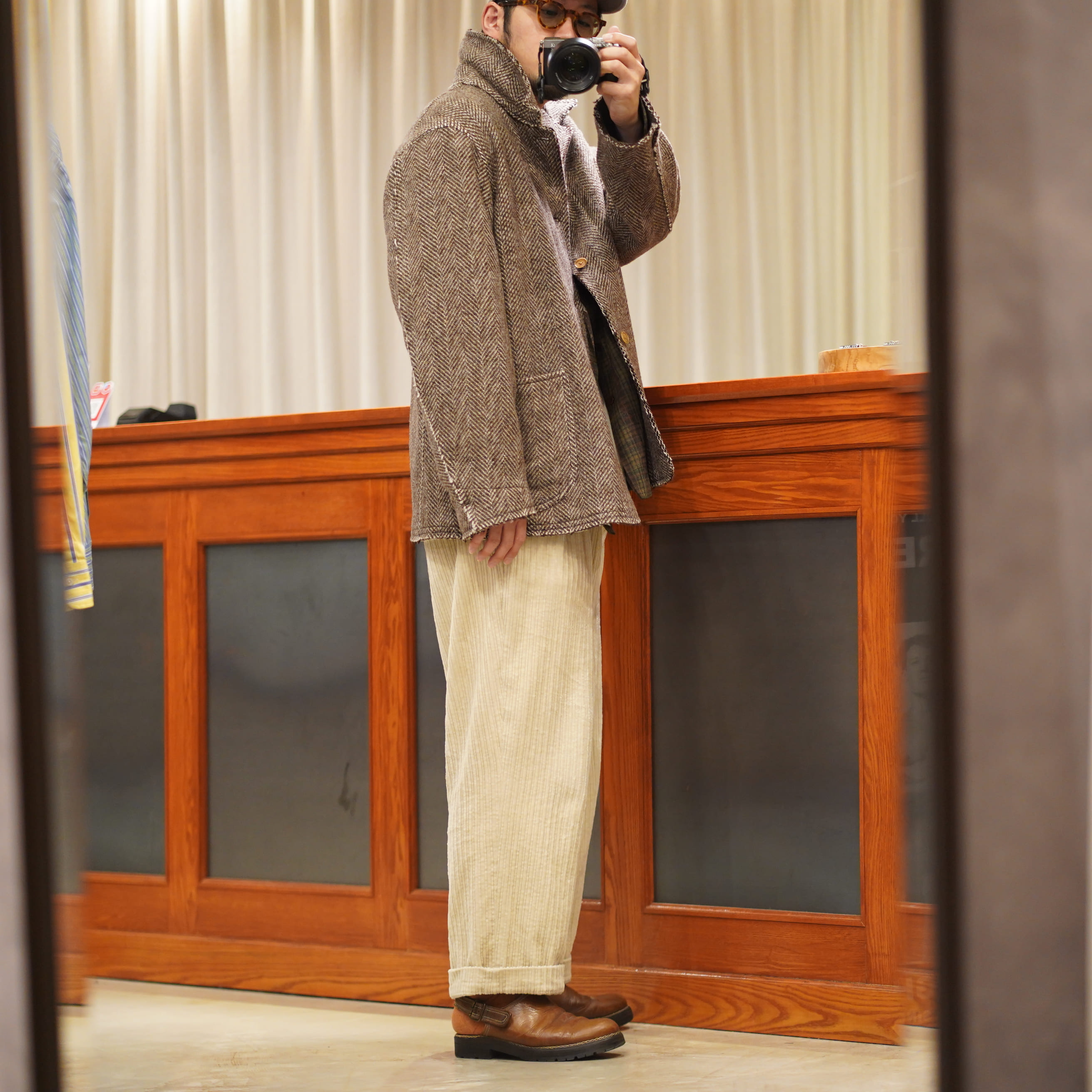 このカバーオールはヴィンテージなどで見るハリスツイードの3Bジャケットなどと違って、よりカジュアルに着れるテンションです。