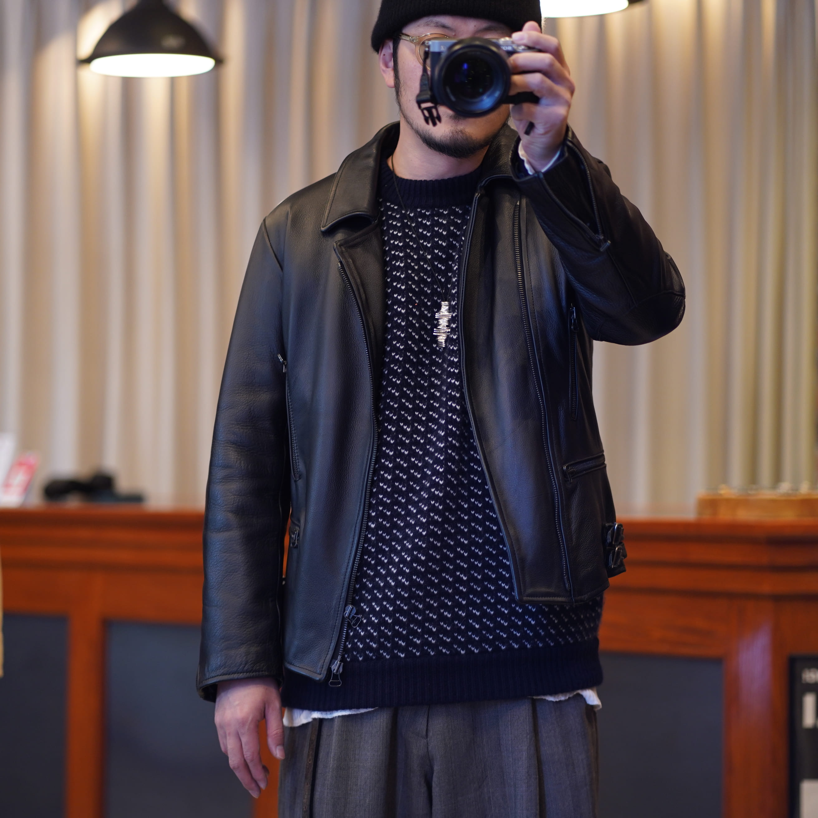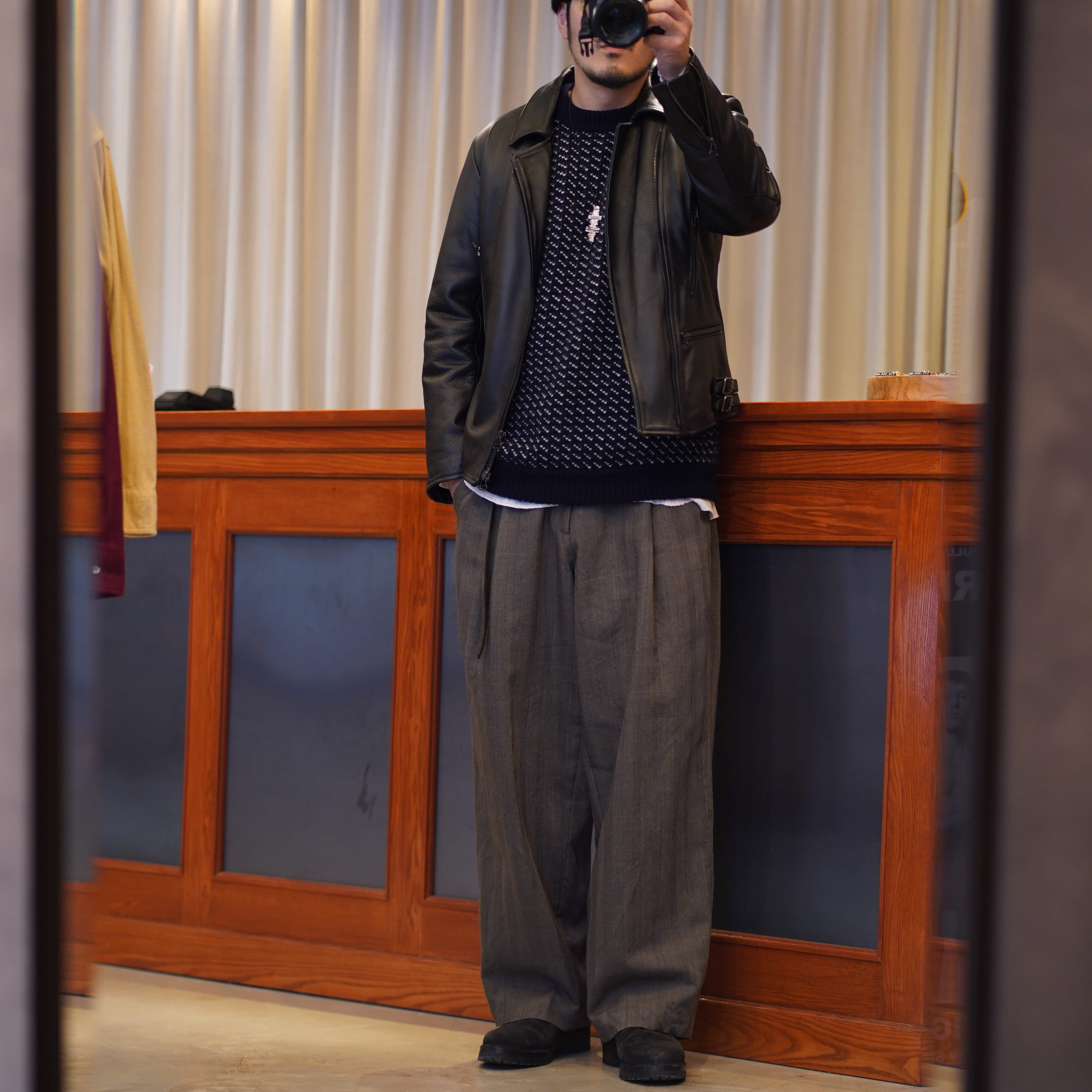 6年ぐらい着ているフランクリーダーのレザー。革質も良いしデザインも好きだけどサイズが厳しくなってきましたわ、、、、。でもこれはもっと馴染ませて着ます。