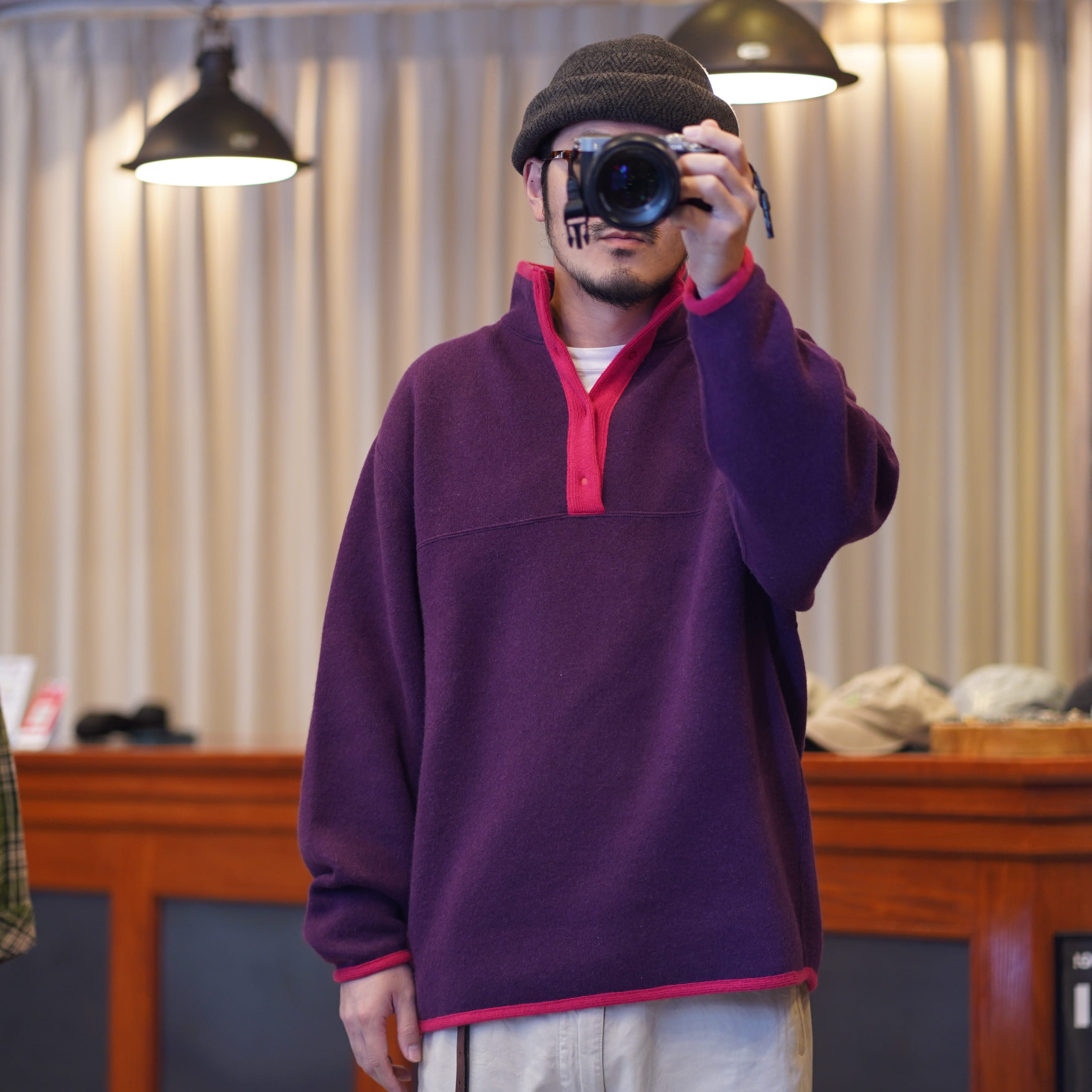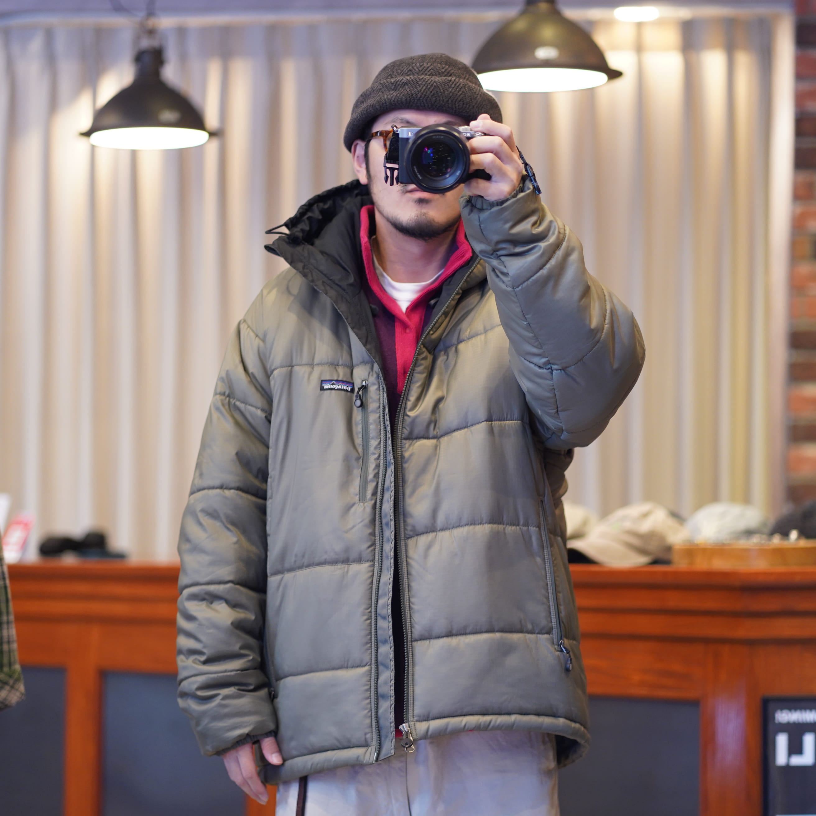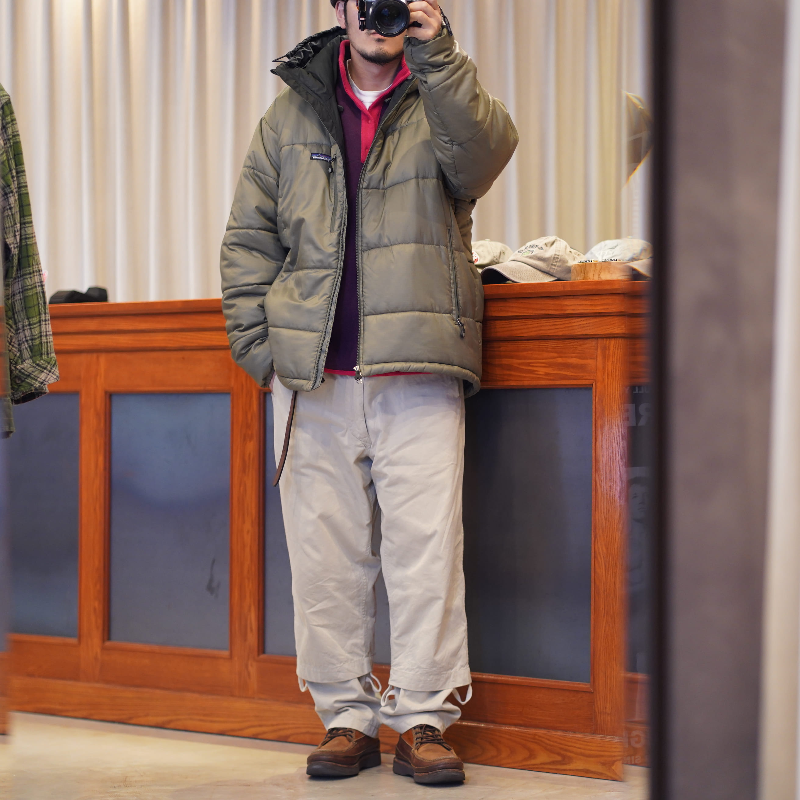 古着のパタゴニアをリメイクしたブルゾンは裏地もボアになっていて暖かい。まずデザインが最高過ぎる、サイズ感もボックスシルエットでサイズフリー。誰が着てもしっくりくる不思議なサイズ感。