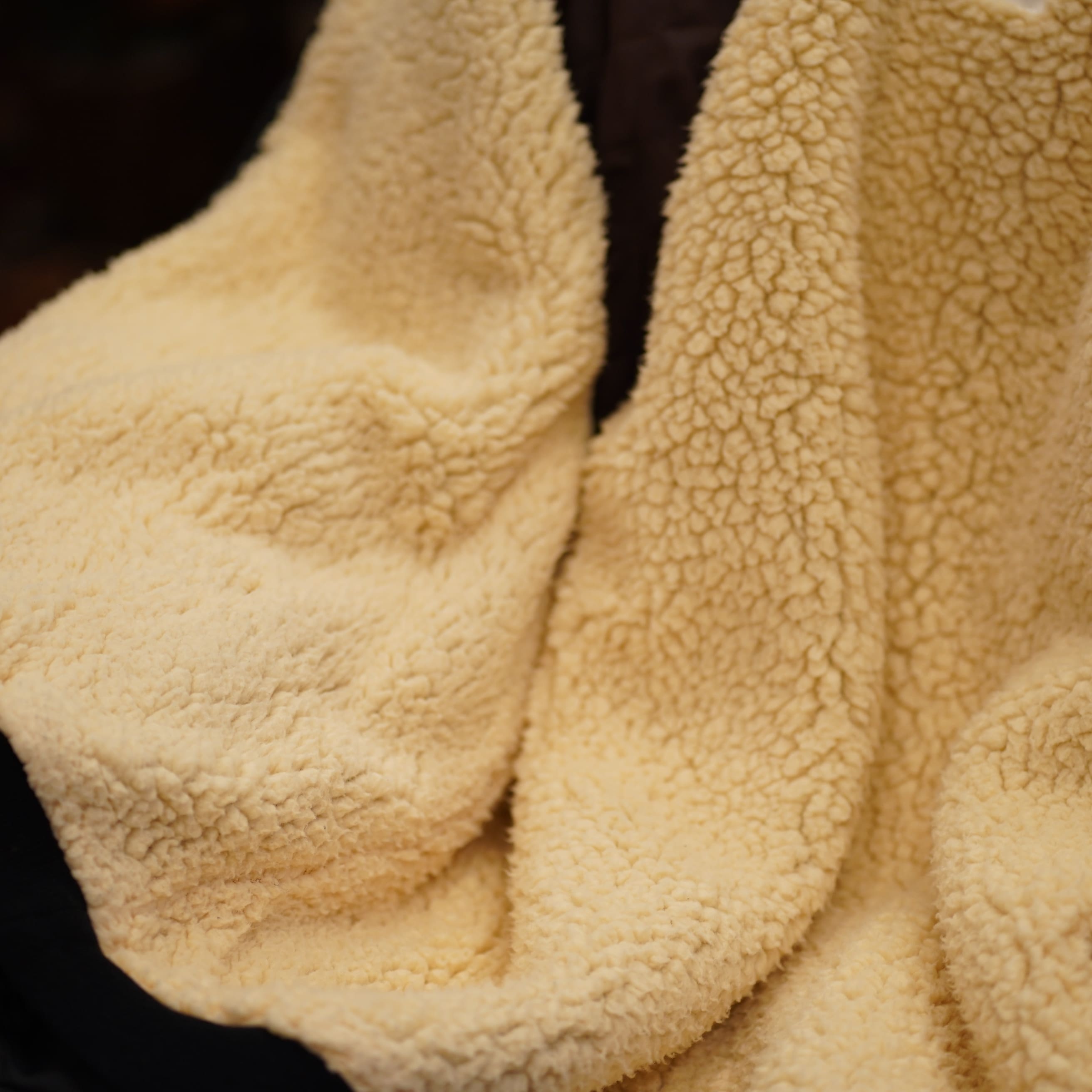 ゴートスキンを使用した男らしさ溢れる雰囲気の1着で、傷も目立たないし雨にも強いのが特徴で着ていくとデニムのようにアタリが出てくるのがとても愛着が湧きます。