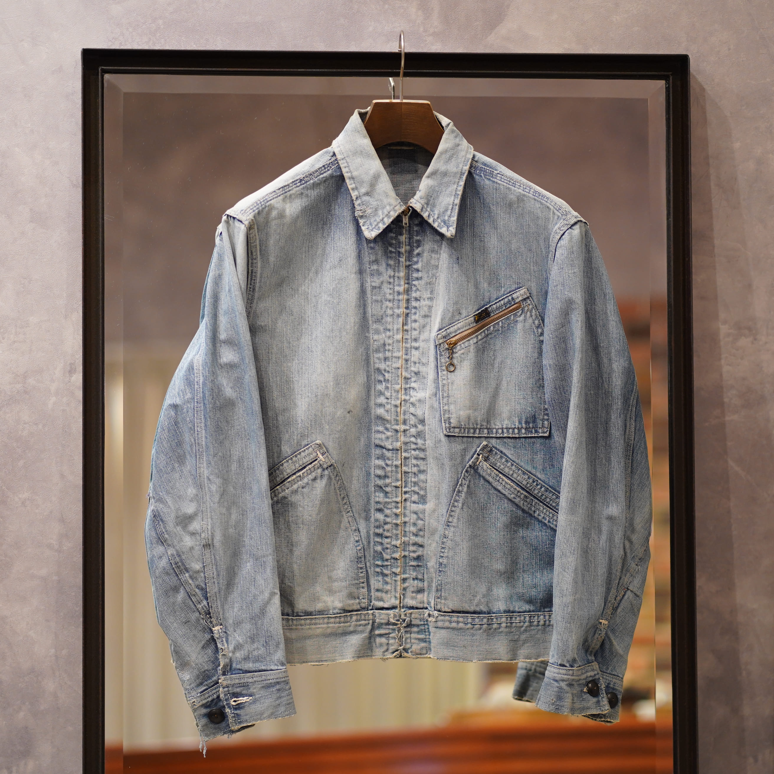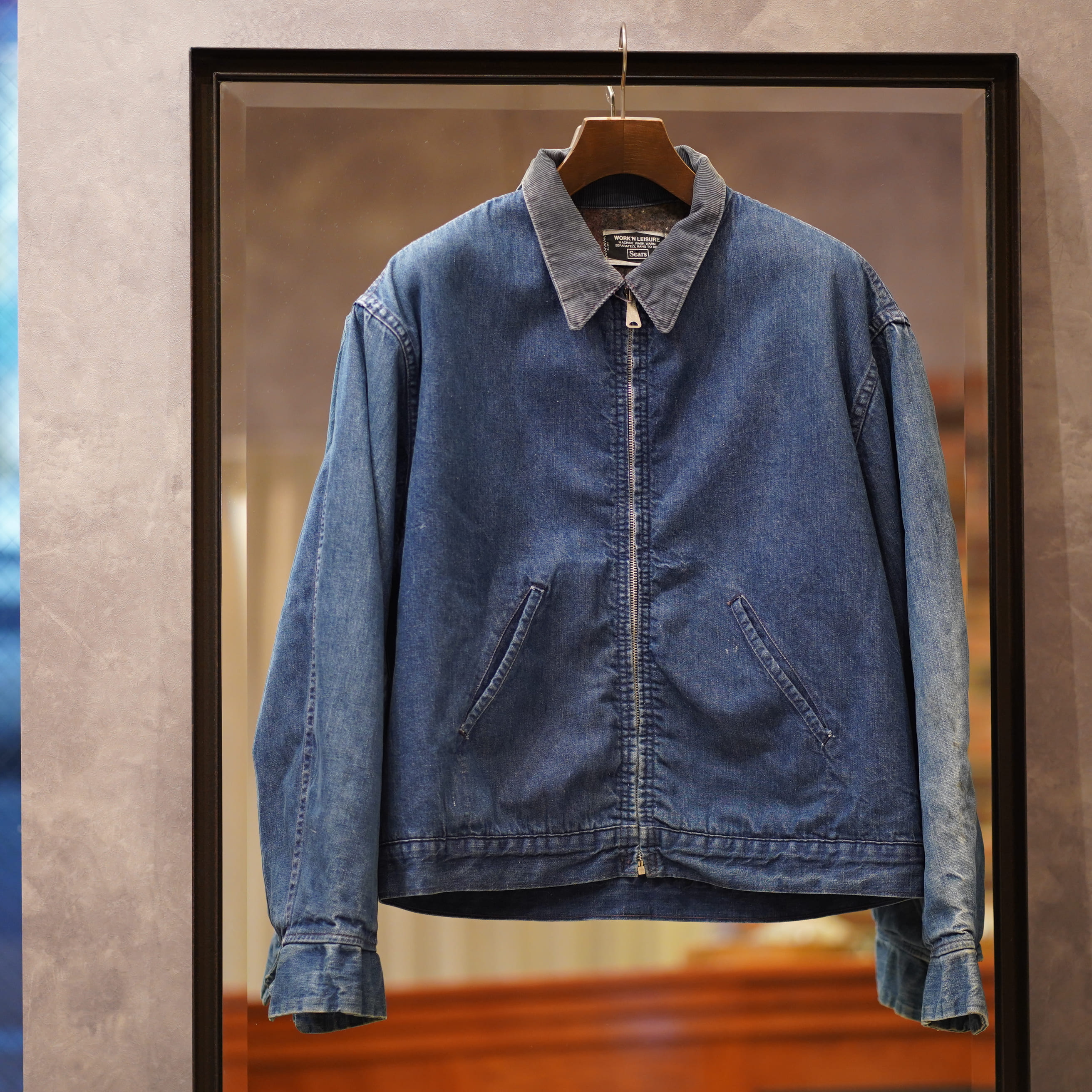 着込まれたデニムの味のある風合いが良い60~70年代頃のシアーズのワークジャケットです。襟にコーデュロイ生地があしらわれていてオールド感のあるデザインです。裏地が付いているので寒い季節にも対応してくれます。ジッパーはGRIPPERです。