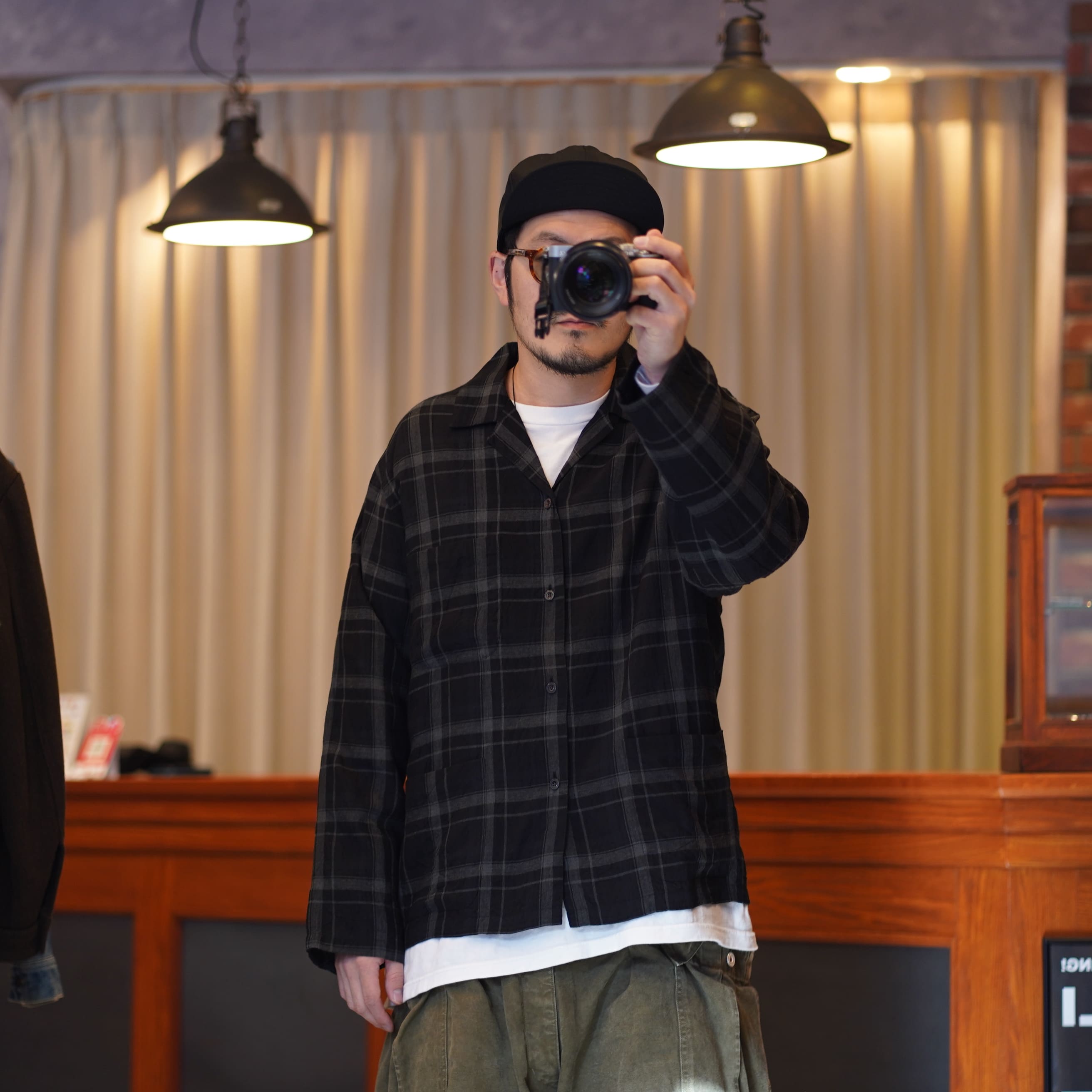 今回のキャプテンのレーヨンは味わい深いレーヨンのスパン糸を使用して、旧式の織機でゆっくりと織り上げたシャツ素材。生地洗い後、極力引っ張らずに天日干しにて柔らかな風合いに仕上げています。