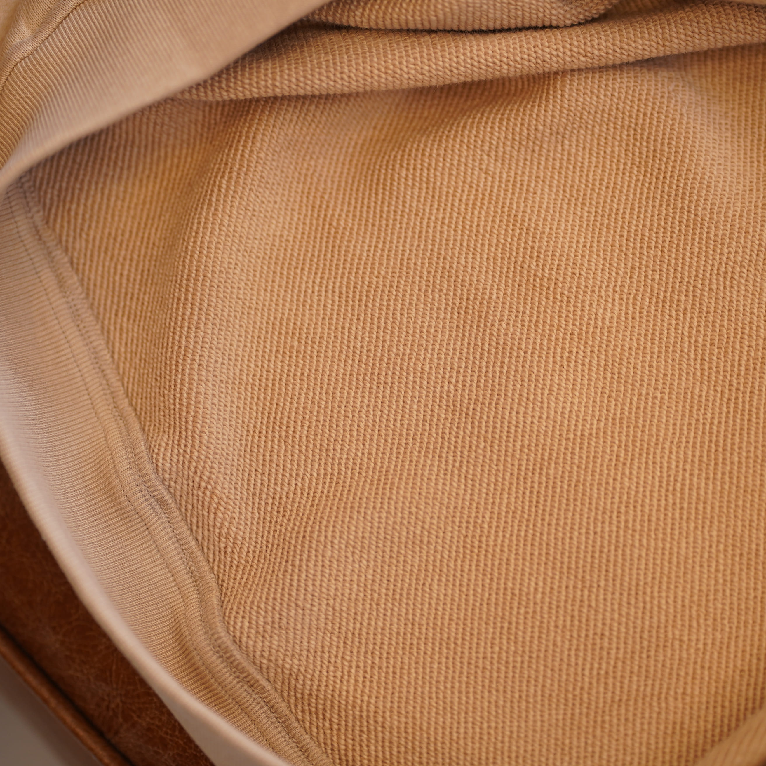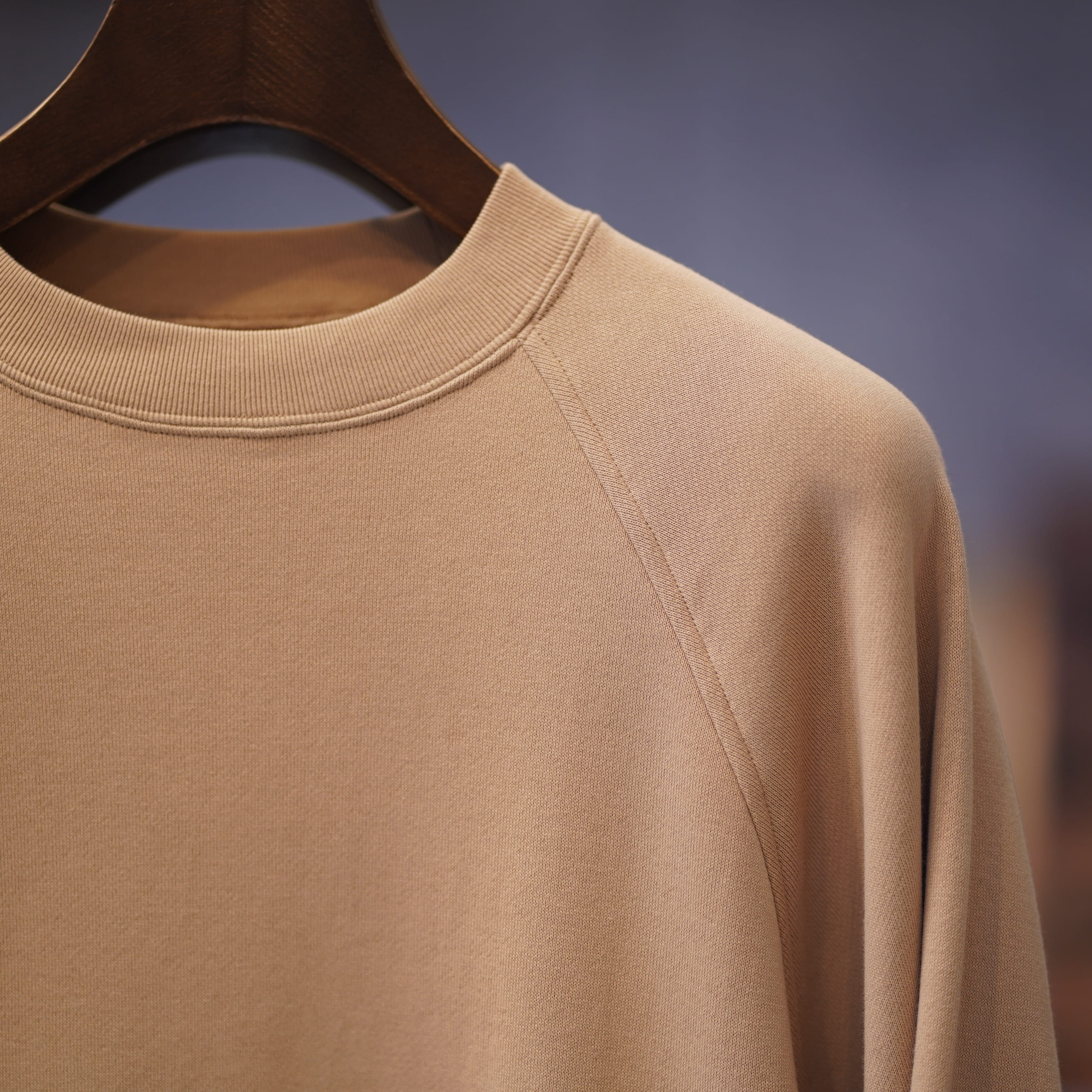 表糸にはインド超長綿のスヴィンコットンを使用。裏糸には無撚糸コットンウェイト・スウェットです。また、旧式の編み機でゆっくりと編み上げているので、優雅な膨らみも併せ持っています。