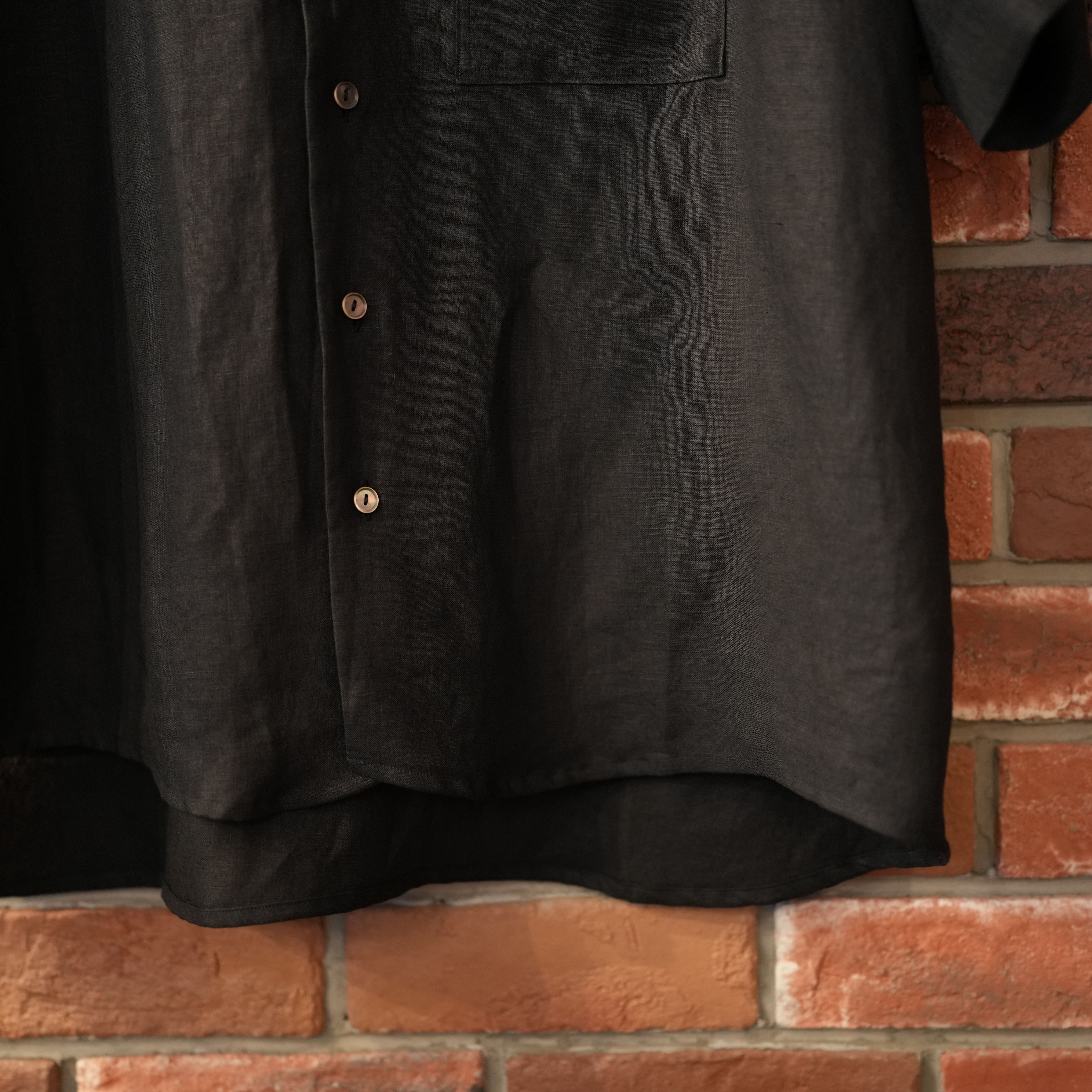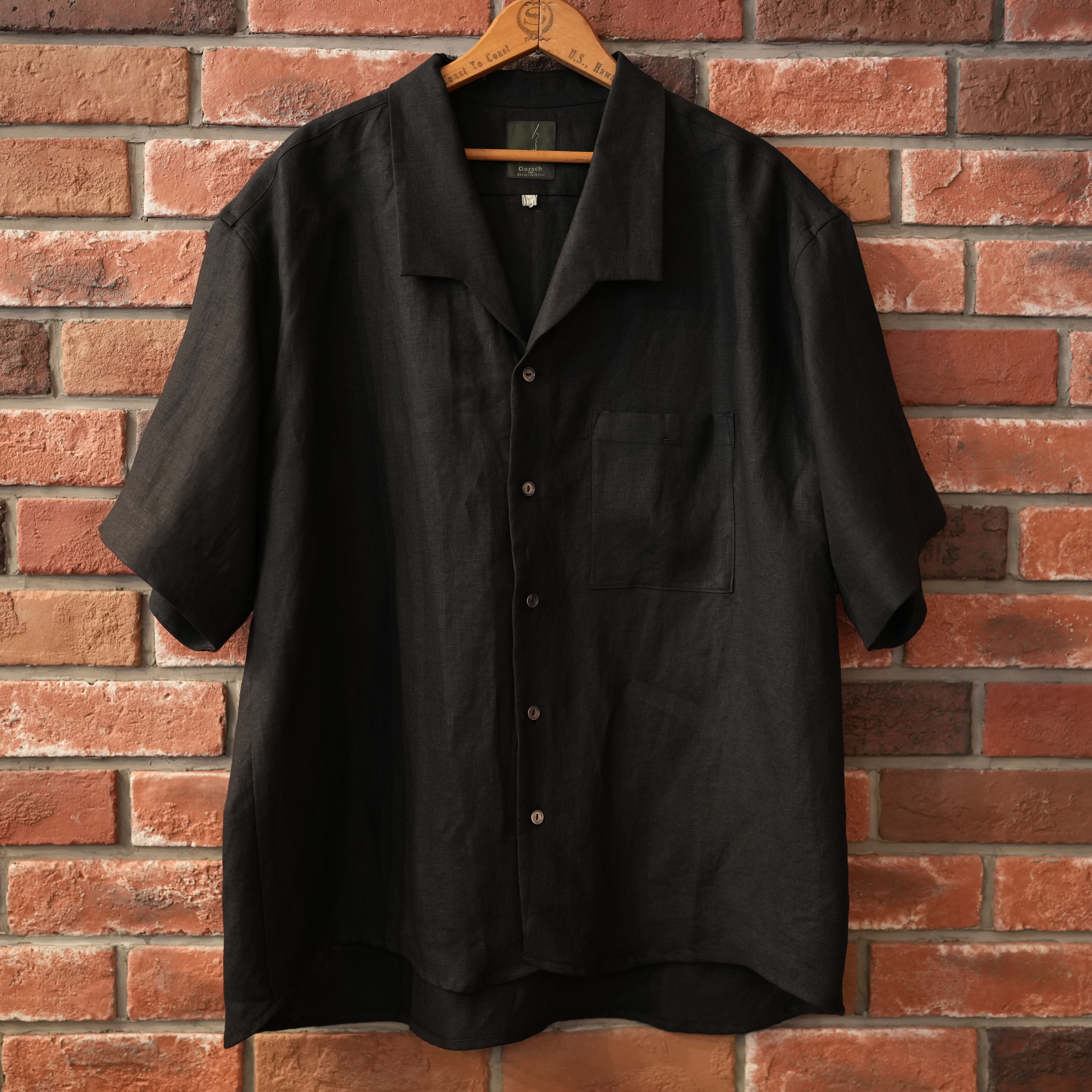 ゴージラインが下がった大きなラペルが特徴のショートスリーブシャツです。