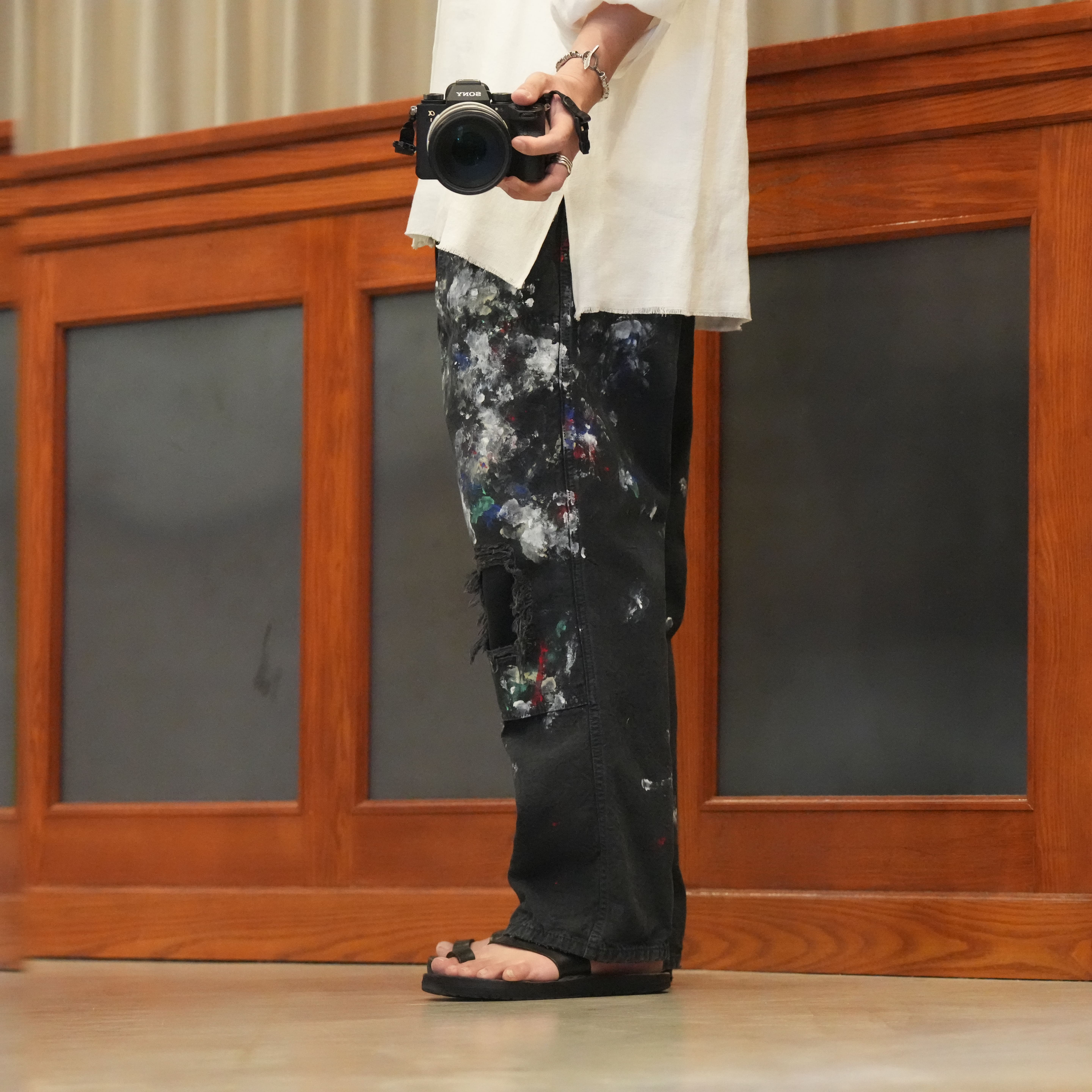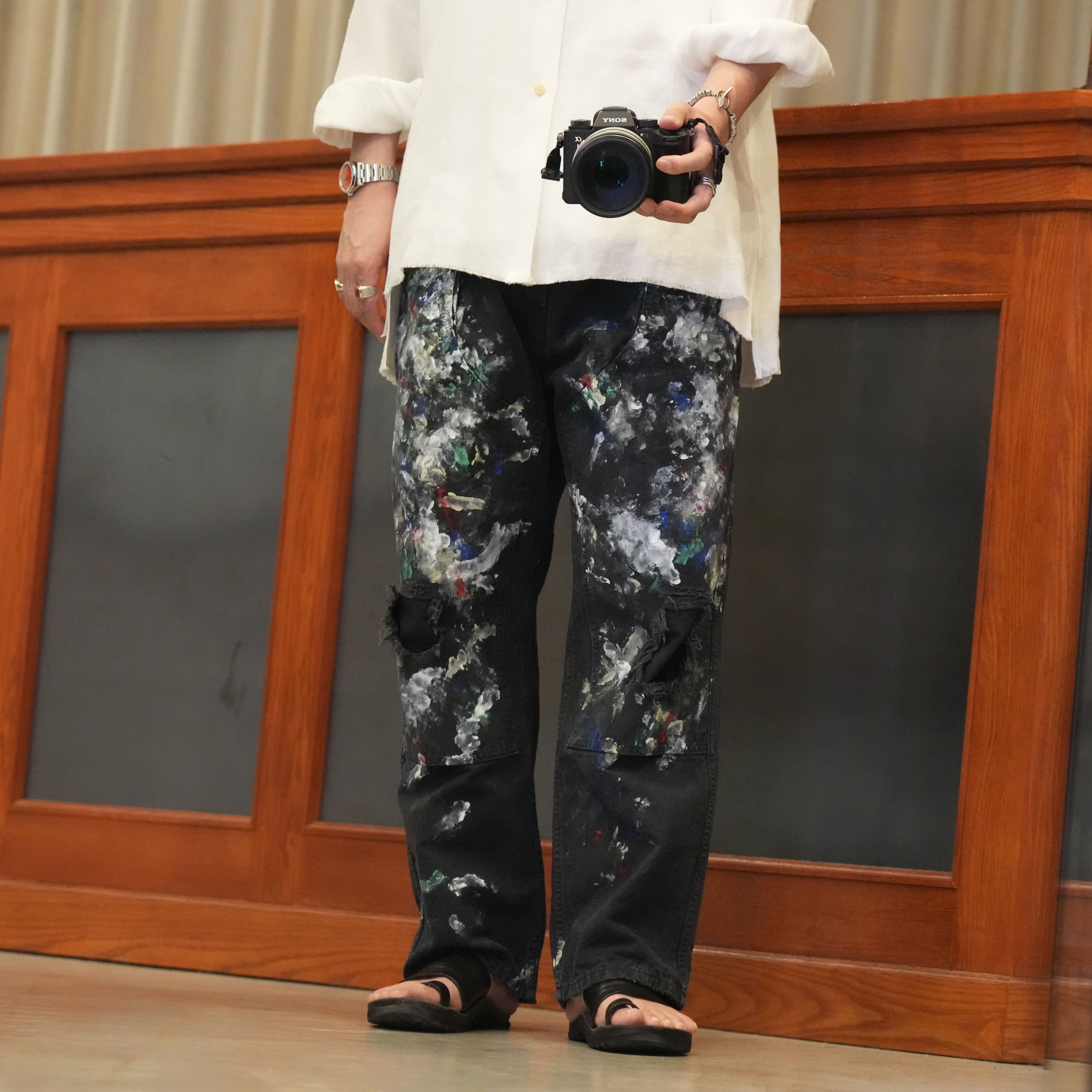 これがただのダブルニーのパンツだと考えると普通過ぎませんか?ペンキの量が半分ぐらいになると少し寂しい気もしませんか?やっぱりこのデザインで完成しているんです。