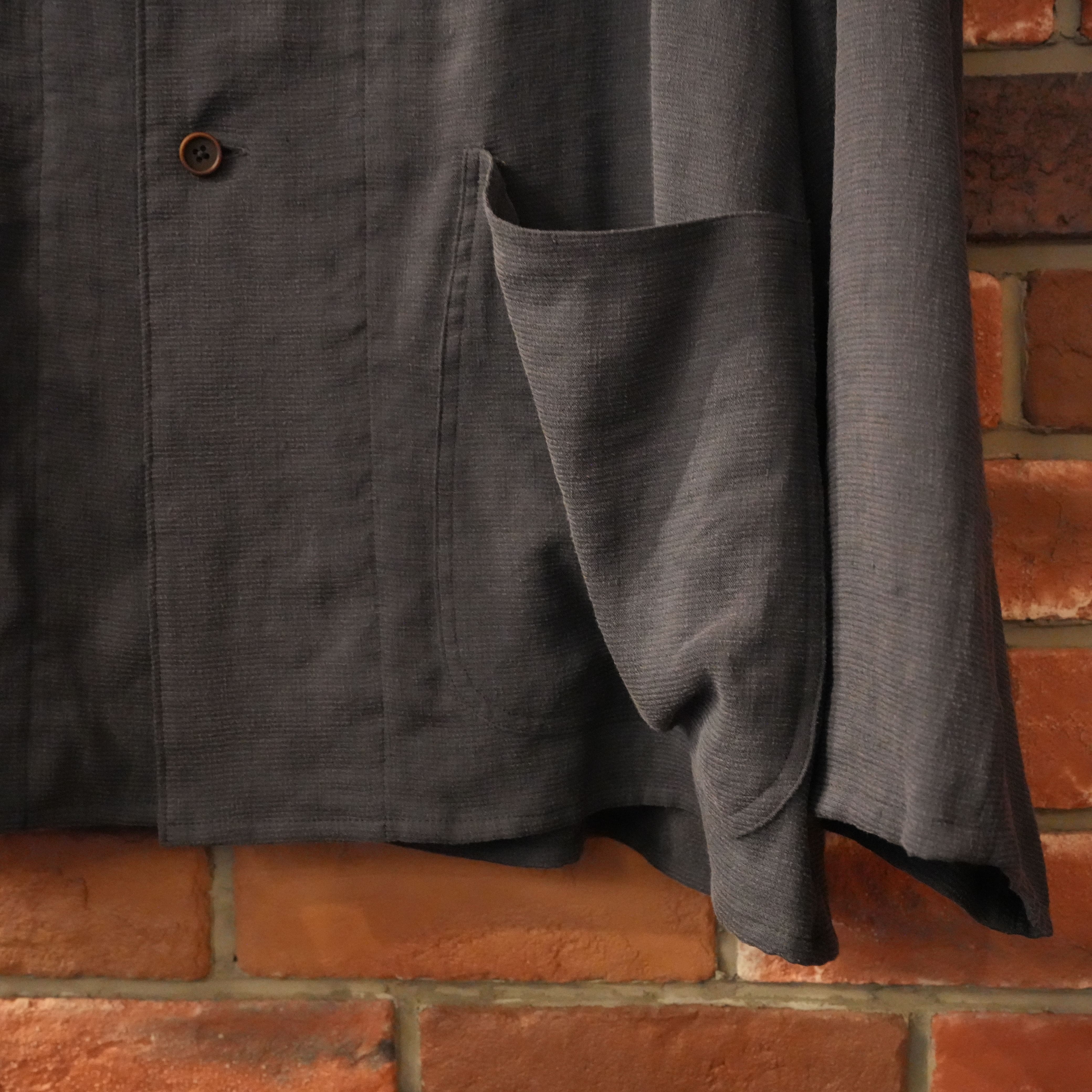 この生地、着用して洗って、袖を捲った所に皺が出来て、直射日光により少しずつ表面が焼けてきて色が変わって、いろんな事が重なった経年変化は絶品だろうと想像しています。