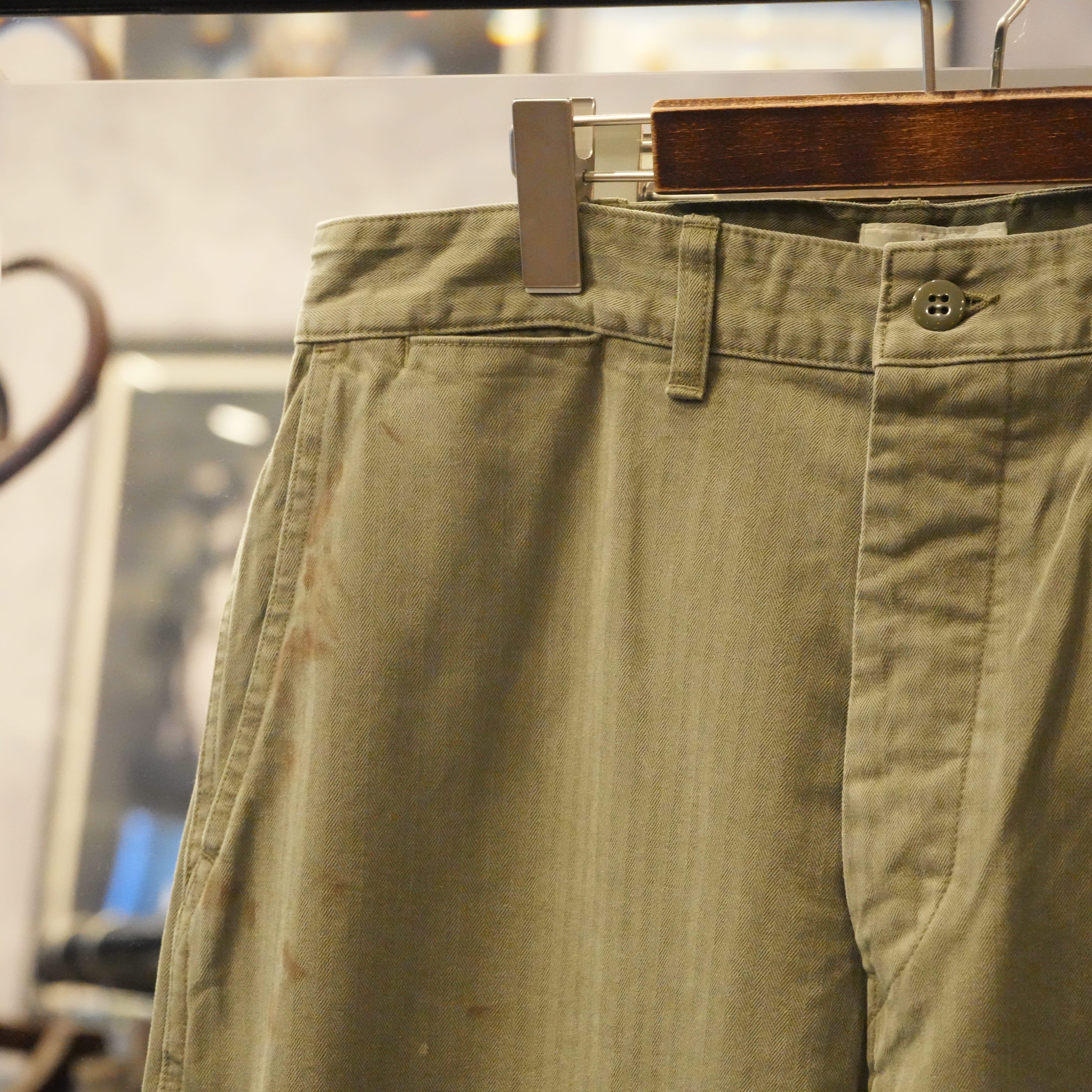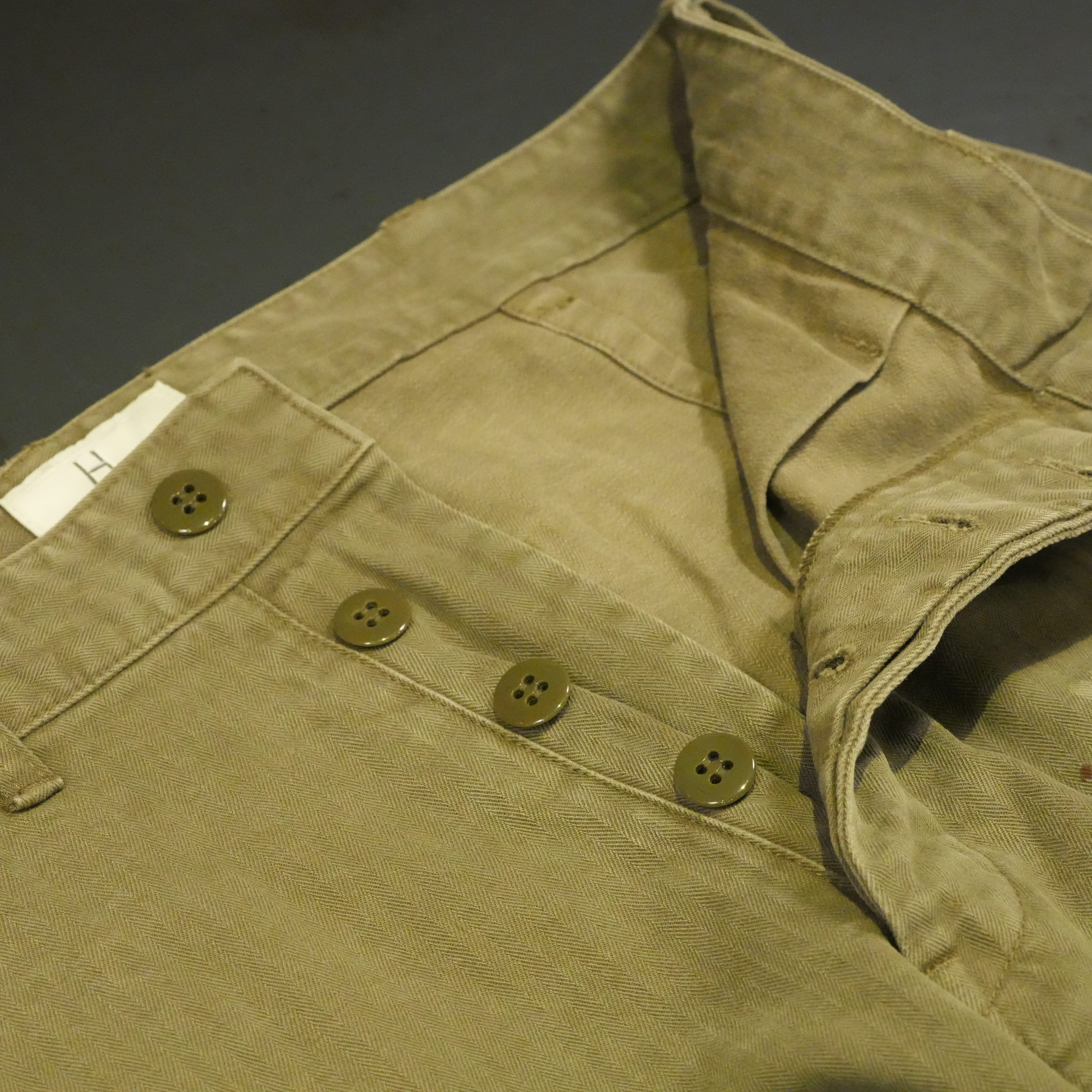 この辺りは1度は見たことあると思います。オリジナルは結構野暮ったいシルエットになるので、ザ軍パンみたいになってしまいますが、HERILLは腰回りをすっきりとさせて緩やかにテーパードさせたシルエットにしています。