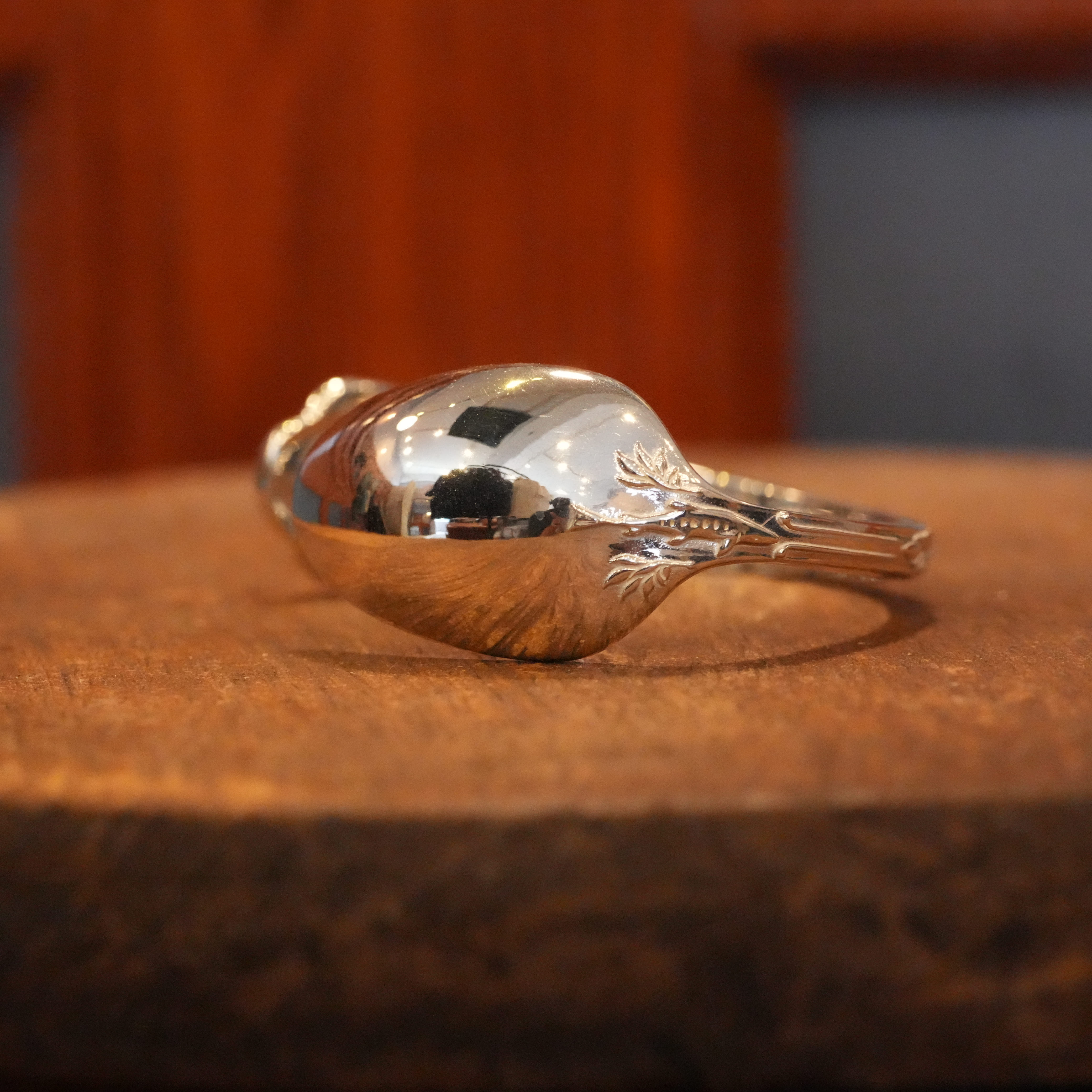これは勿論ヴィンテージのスプーンを使っている訳ではないので、まだ綺麗です。傷もないです。やっぱりシルバー物は小傷が入ったりする事で雰囲気が良くなるので、何も気にせずガシガシ付けて欲しいです。ヴィンテージさながらに味を出して欲しいです。