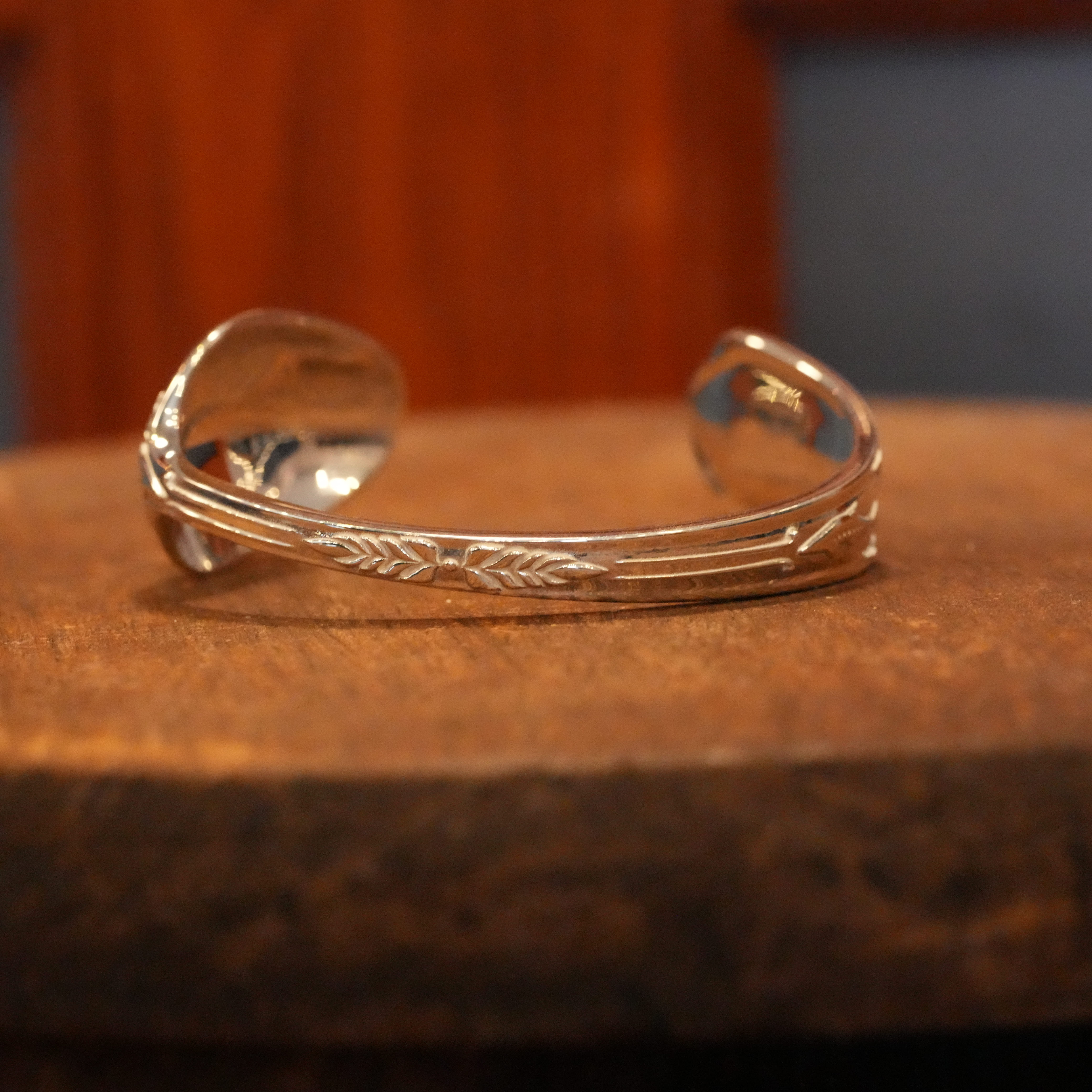 なんでしょう。シルバーで作ったバングルにするとこんなにも洒落っ気が出るんですね。