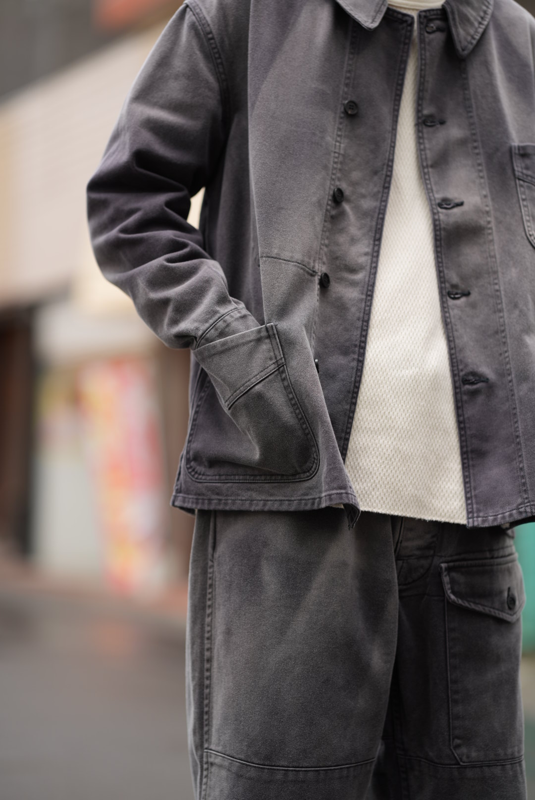 生地は肉厚でかなりハードな加工を施しており、ヴィンテージ界隈でもこれほどの雰囲気をもったフレンチワークジャケットもほとんどないでしょう。