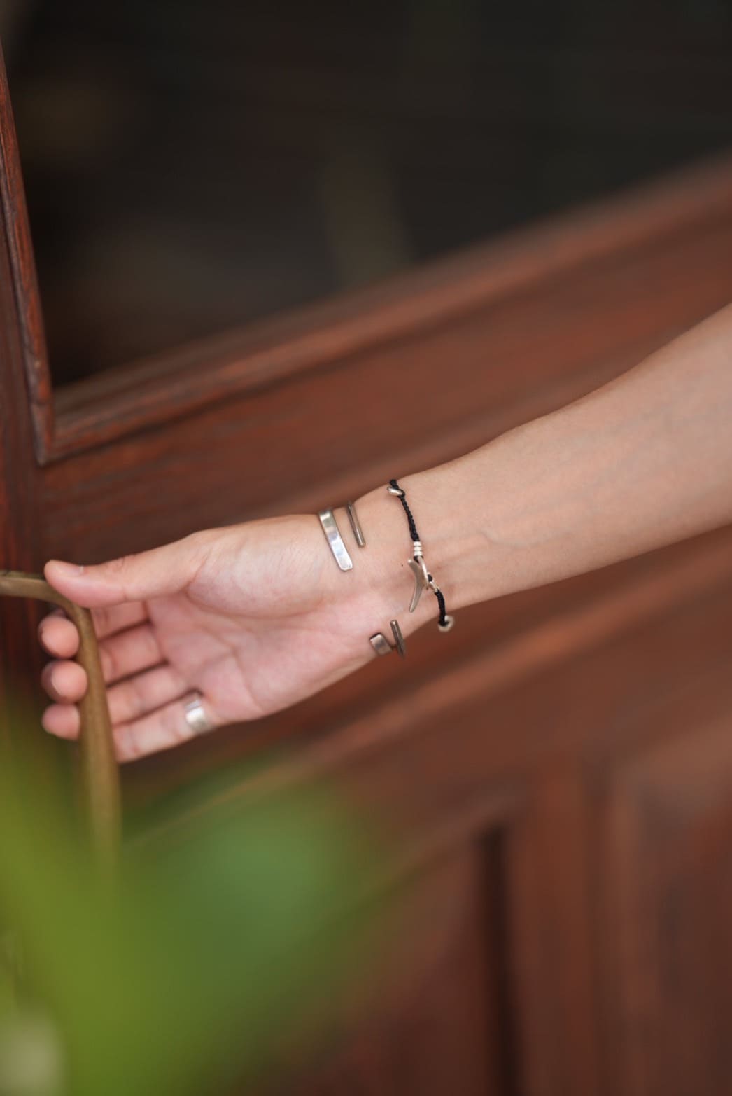 普段からバングルを2つ付けているので、それと重ね付けしたいなーなんて思っています。思い入れのあるバングルなので、それと合わせられるデザインに惹かれました。