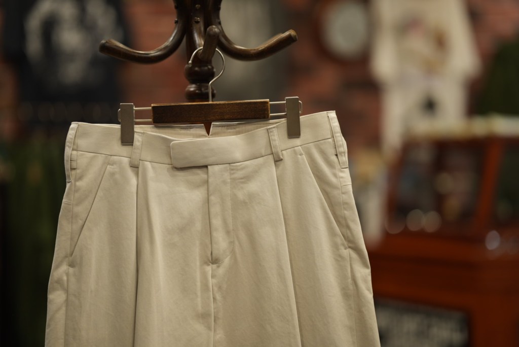 サイドにタックが入ることでこのパンツならではの横顔と絶妙なシルエットを生み出します。