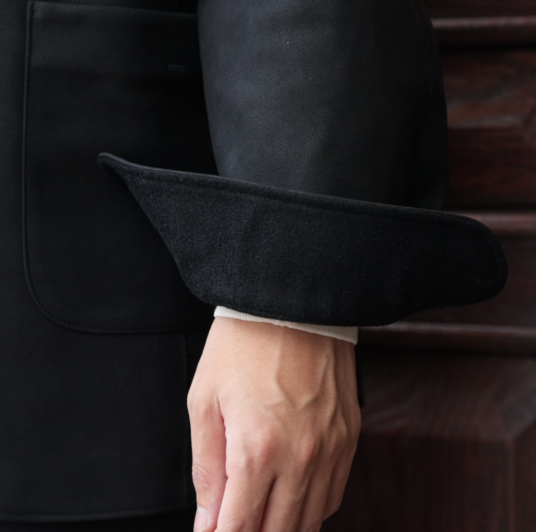 襟元、袖口裏にはタッチの滑らかなウールを配しています。着用した時の着心地も良くなっています。これは地味に嬉しいポイントですよね。あると無いのとでは永く着用していく上で着用頻度が全く変わってくると思うんです。