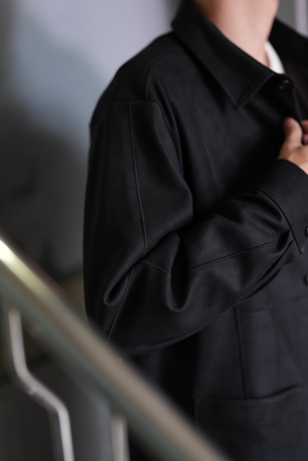 今年の年始に春夏入荷の1発目で同レザーのシャツ型が入荷しましたが、今季は進化しました。