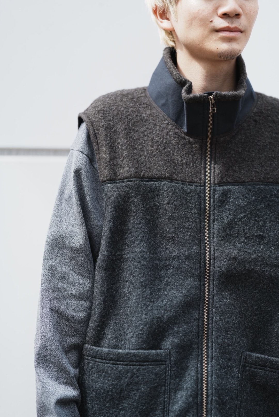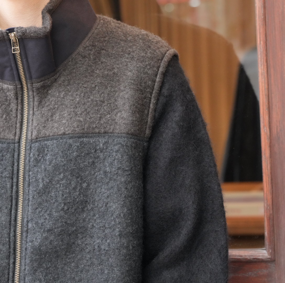 ポリエステル糸にカシミヤの糸を巻き付けてるとか何とか、僕レベルでは全く理解の出来ない話をしていましたね。ここまで寄って見てもフリースなんですよね。たまーに見かけるウールのフリースでもこんな表情ですよね。