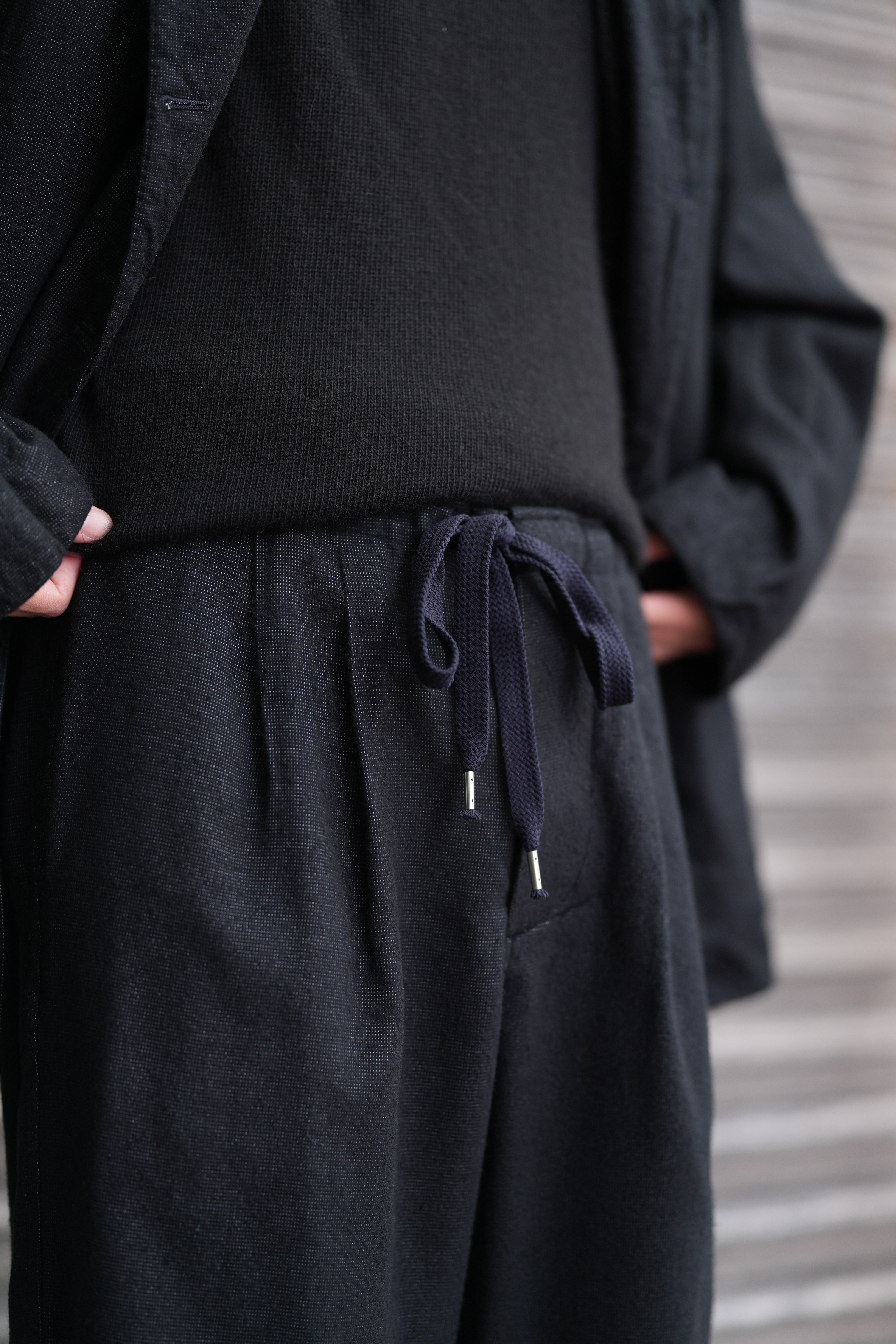 ただのイージーだと落ち感が強く、シンプルになり過ぎるところにニータックに若干のパッカリングを加えています。このパンツの良さは僕が1番知っています。別注したモデルを着まくって実証済みです。