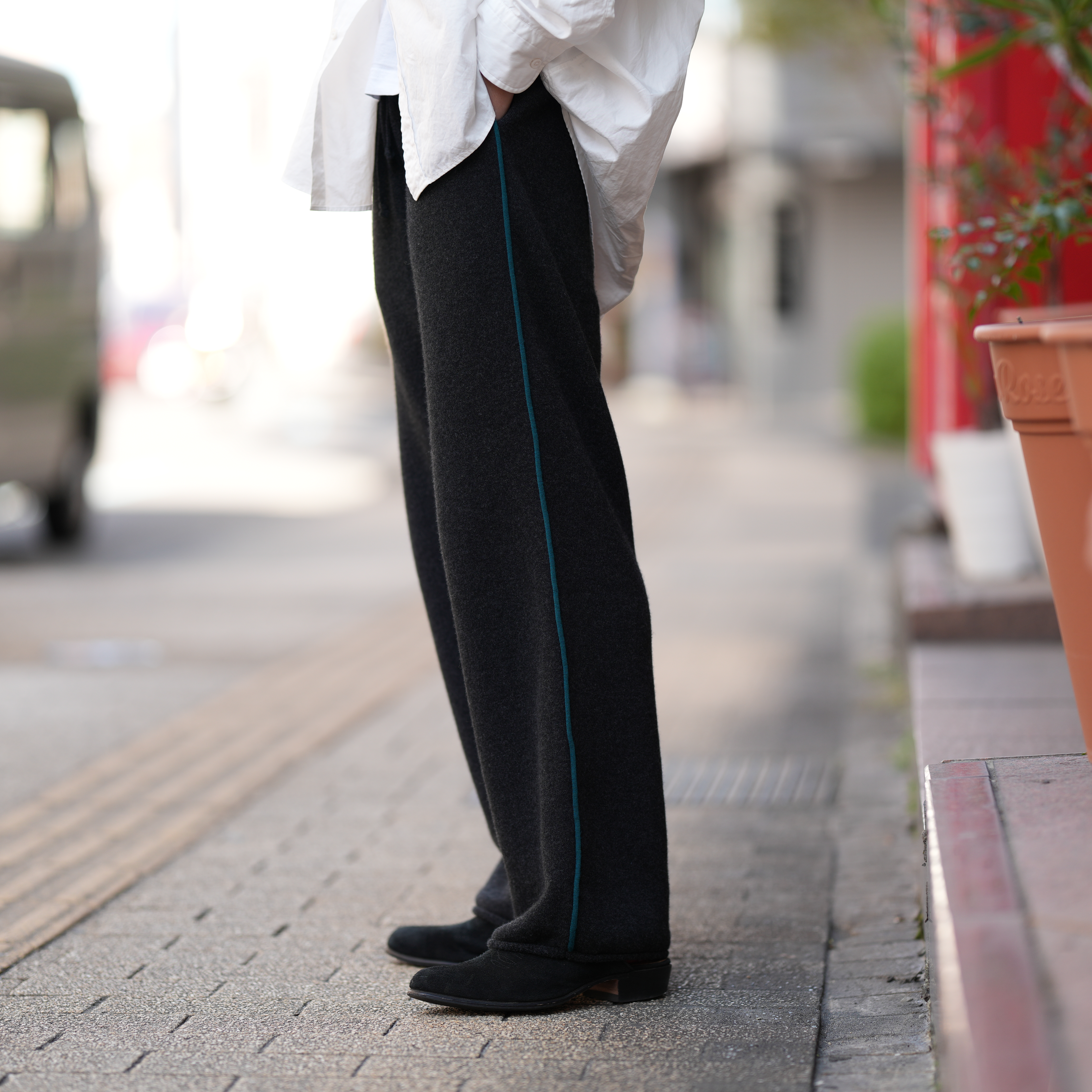 自分にはラフすぎる気がして似合わないと思い、これまで敬遠してきたニットパンツですが、マーティーらしいストンと落ちる微フレアの綺麗なシルエットとサイドのパイピングにやられました。