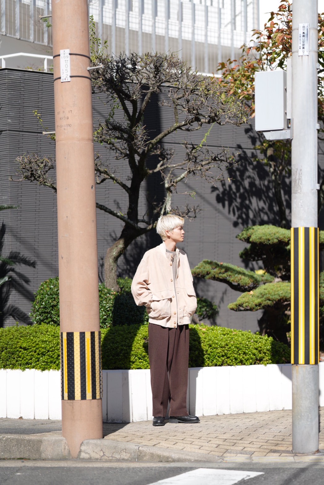 先程までのコットン素材と変わり、こちらは上質なラムレザーを使用したショート丈のブルゾン。