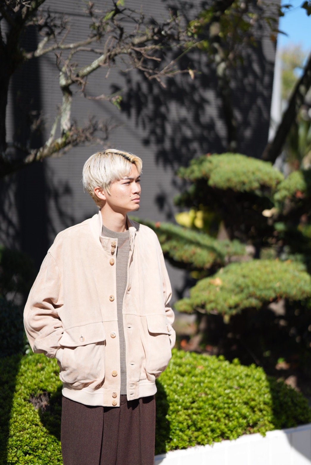 色によっては土臭さが強くなるスエードのブルゾンですが、こちらは秋冬に映えるクリーンな印象のカラーです。