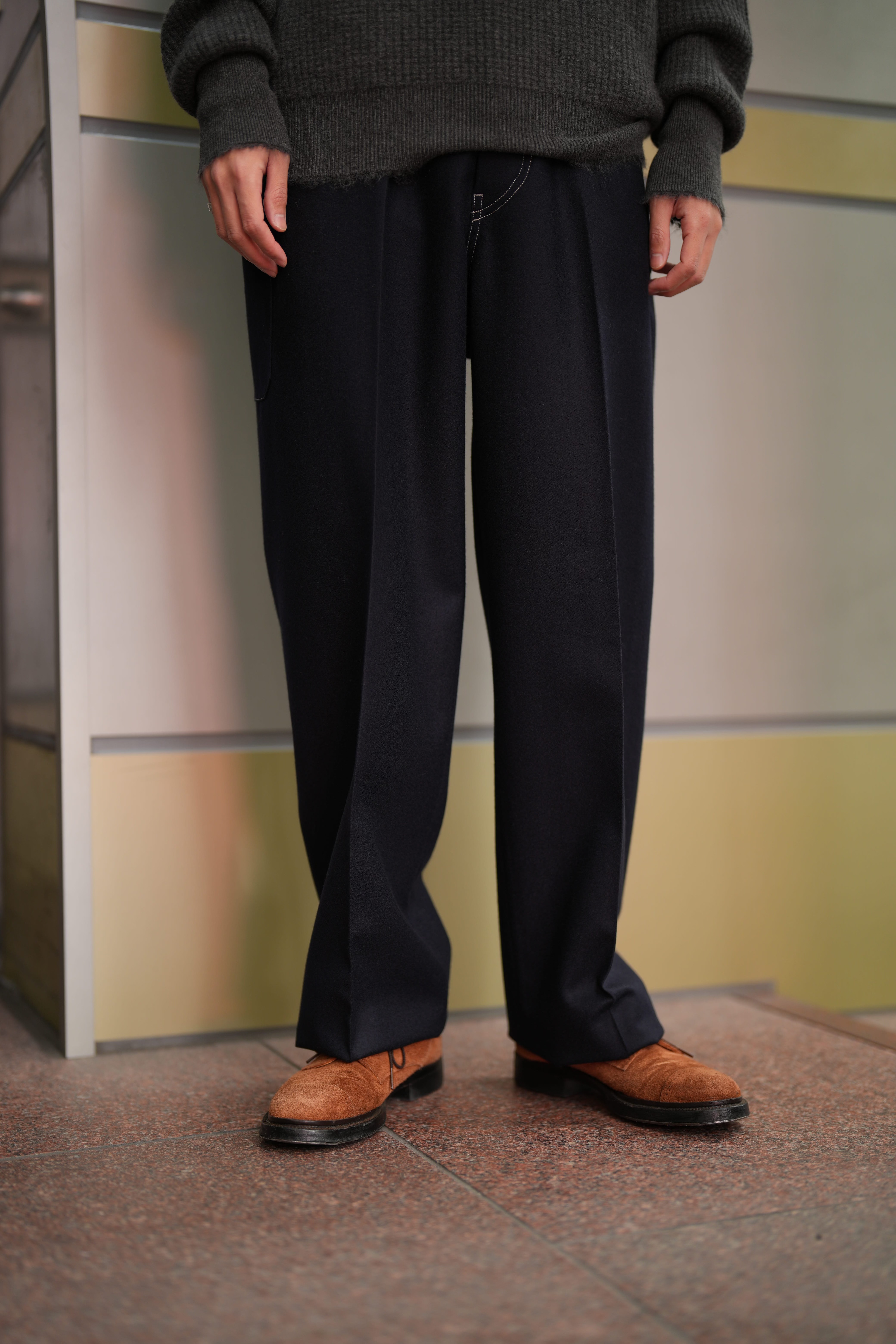 まずは、正統派なドレス、スラックスとしてセンタークリースをキープして綺麗に履くタイプ。そしてもう一つはこの上質なウールを気にせず洗ってセンタークリースを消し、ワークパンツとして履くタイプです。