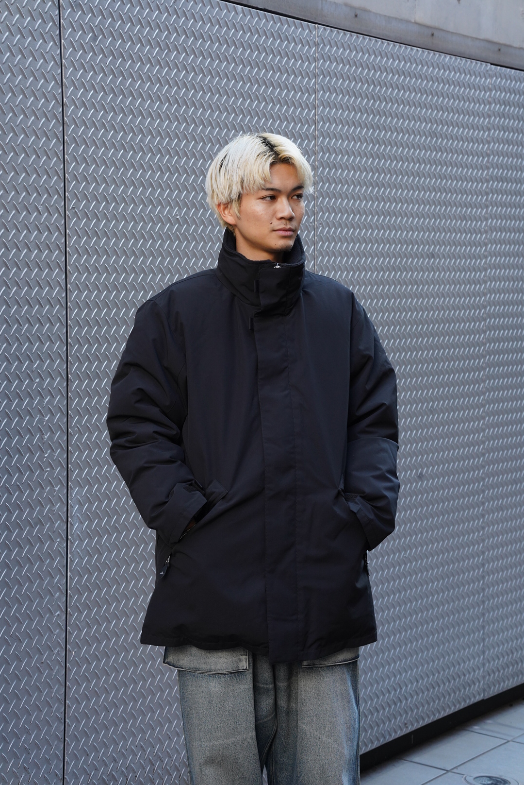 着丈が短過ぎるダウンはカジュアルな印象になっていますが、そこはへリルなのでいいバランスで仕上げてくれています。光沢感がありすぎないブラックの色味も相まって上品な雰囲気です。