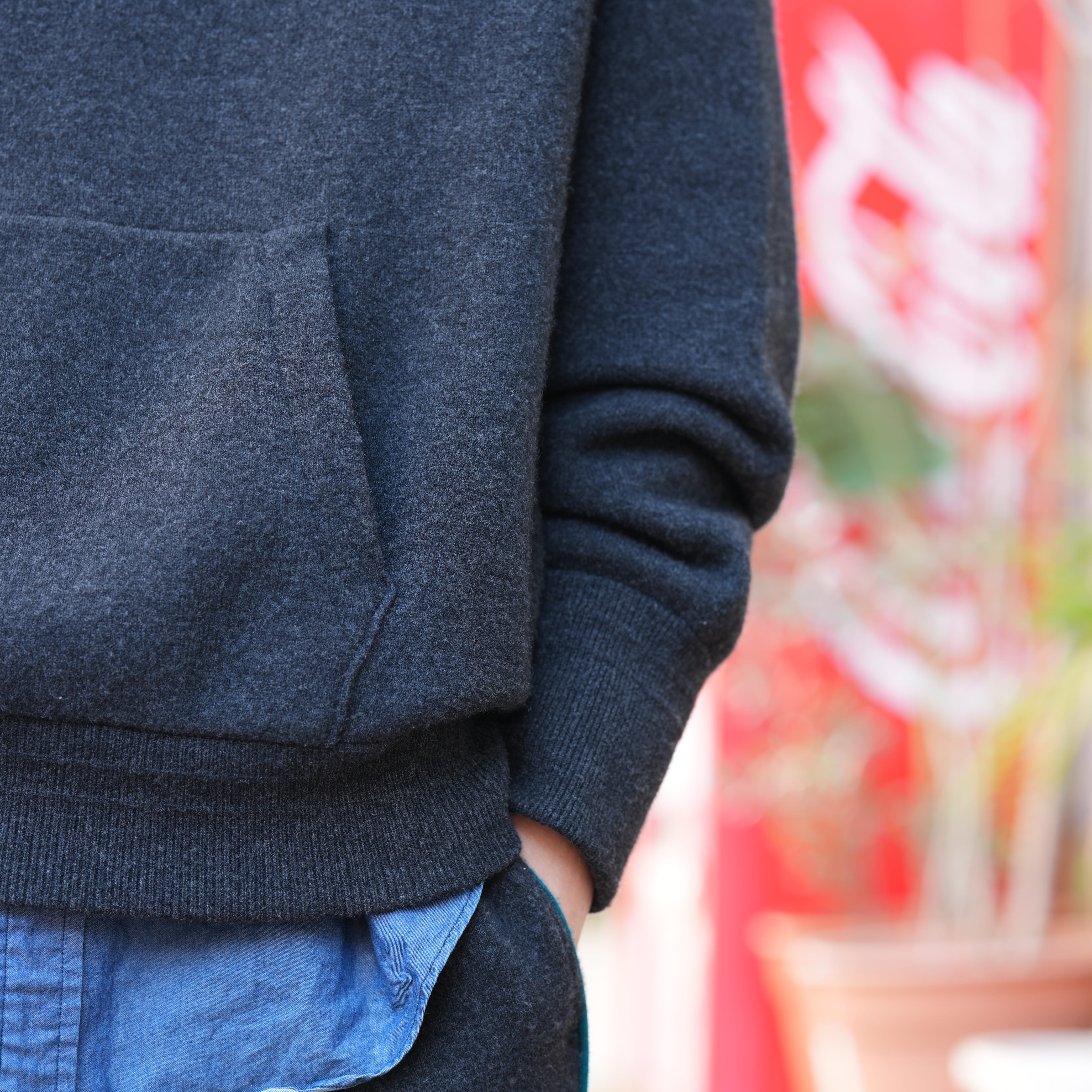 これまで極上の着心地のニットフーディーは着てきませんでしたが、シンプルなデザインでもしっかり存在感があり、着心地が最高なんて、なんで着てこなかったんだろうと思います。