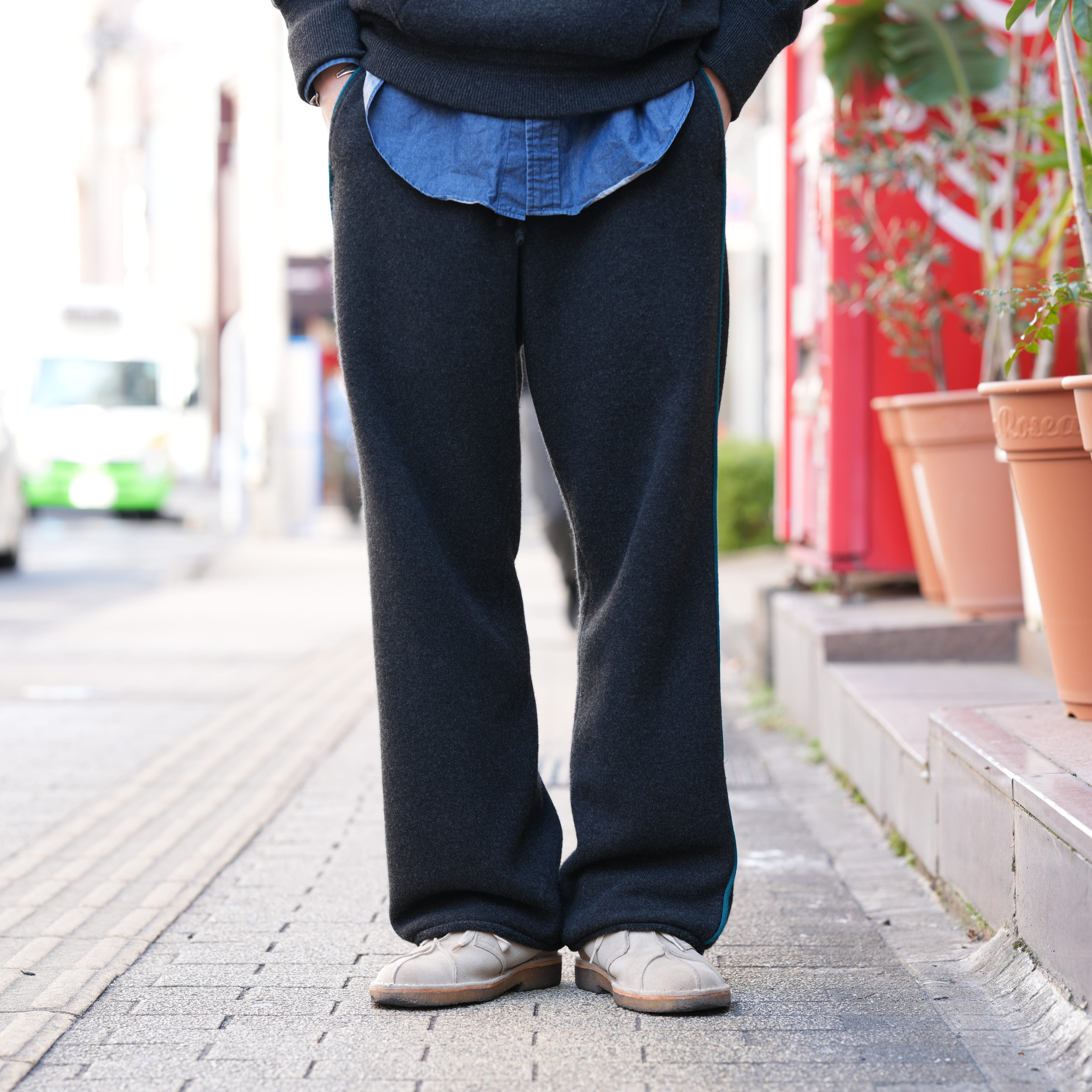 そしてサイドのパイピング。チャコールにブルーの配色が洒落ていて、これによって部屋着感が全く無いです。