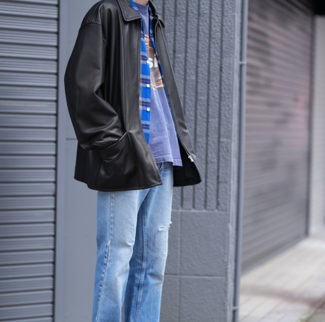 古着との相性の良さがありながら、着心地が良く、埃っぽくならないのが、古着のレザーには無い良さなのかなと思います。