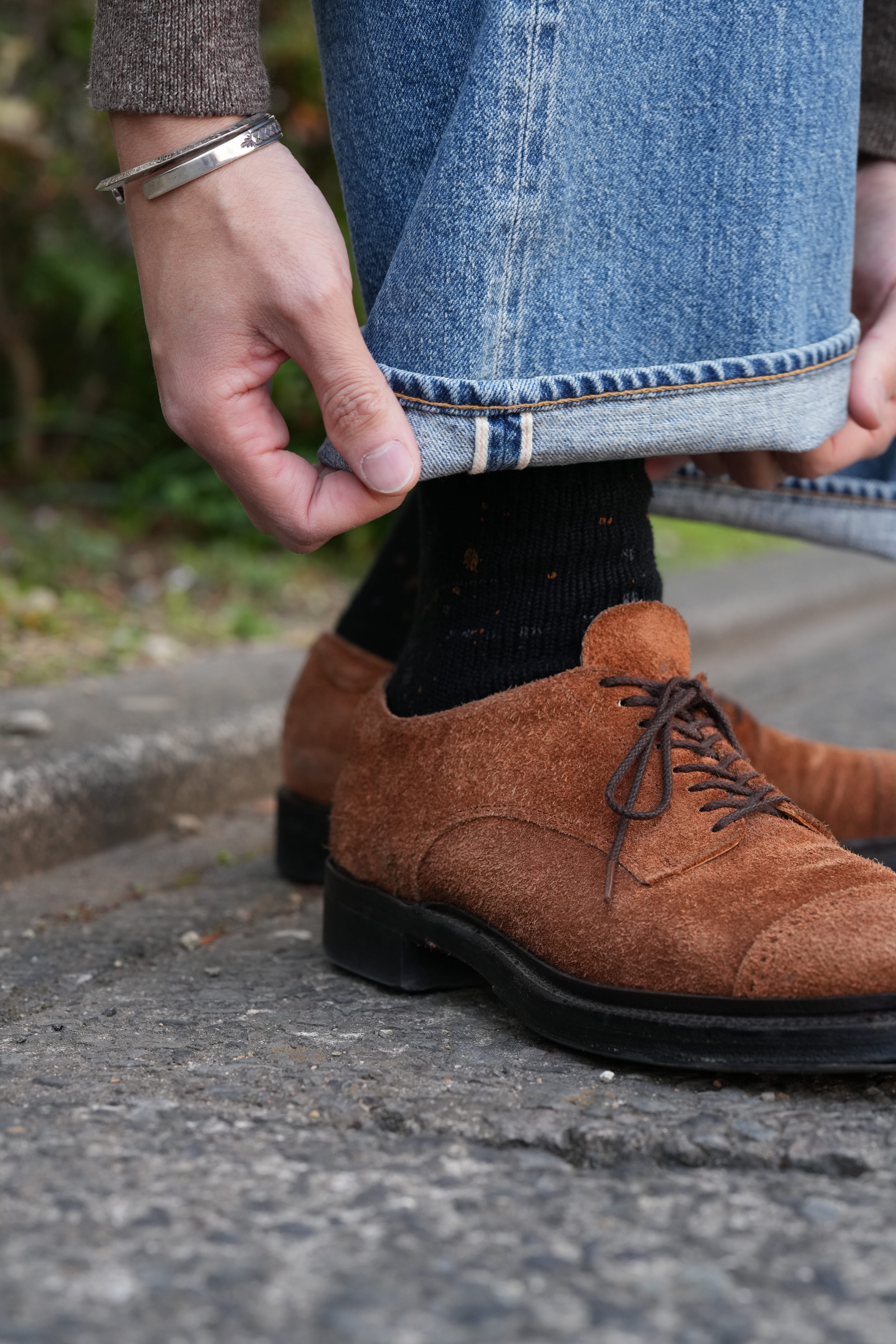 これから入荷するであろう、キャプテンサンシャイン×パラブーツのデッキシューズやformeのローファーとの合わせを考えるとワンロールが無難かなって思ったり。