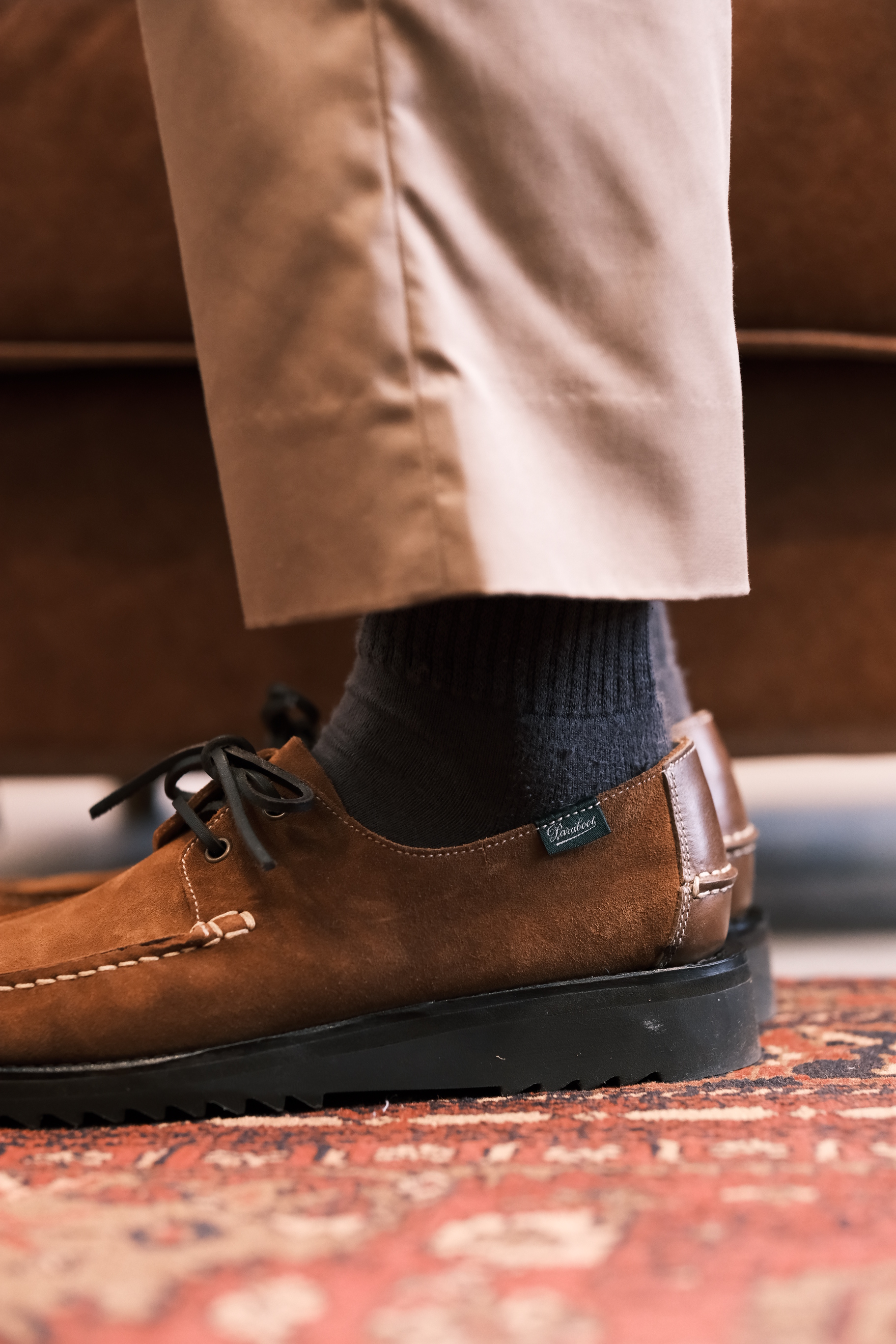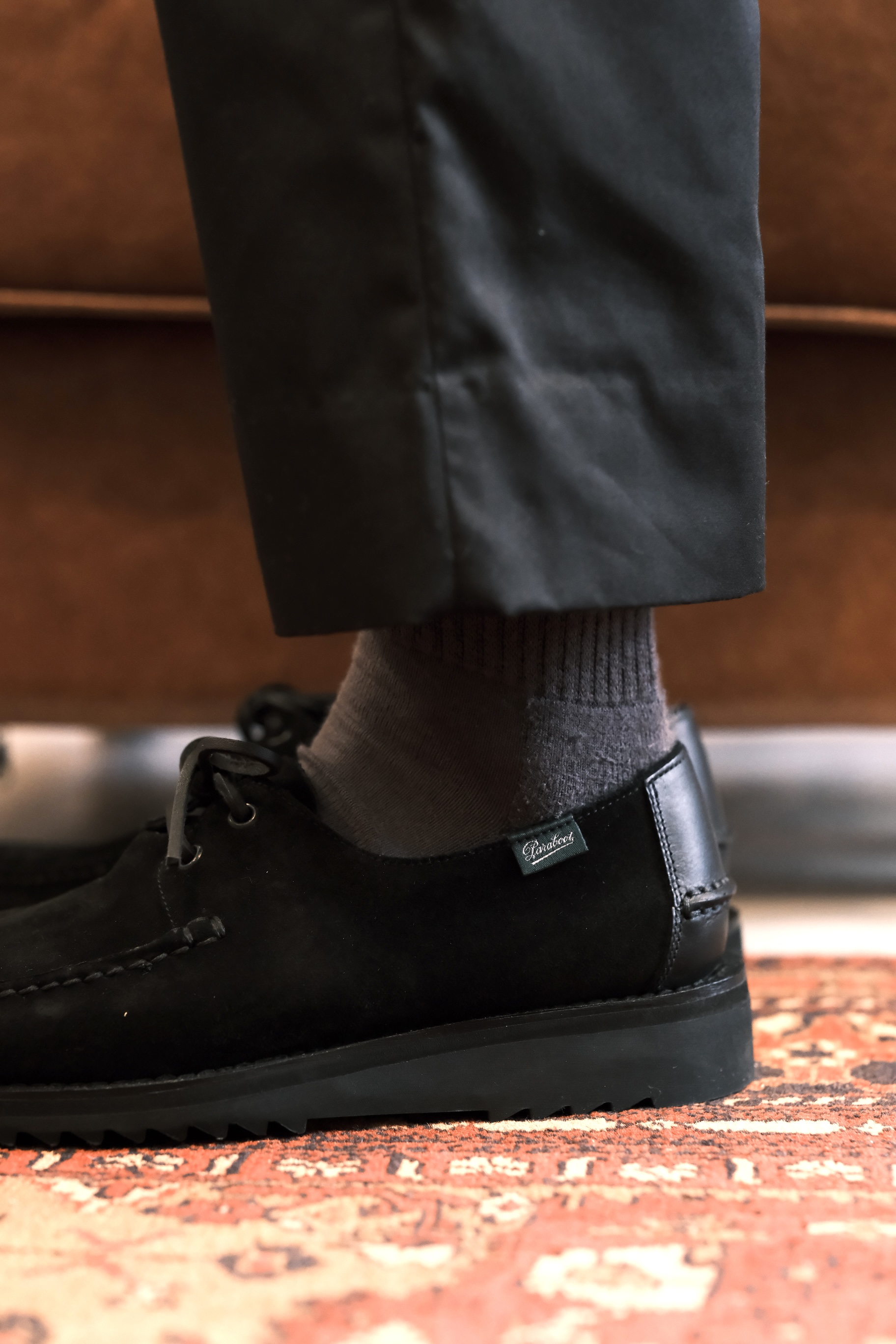 そして、formeともMARMOLADAともまた一味違うカテゴリーに位置するこのキャプテン×パラブーツは是非抑えておくべき1足だと思います。ワイドパンツにもあって、ストレートシルエットにも合って、ショーツにも合うと、、、汎用性だけを考えるとNo.1かもしれません。
