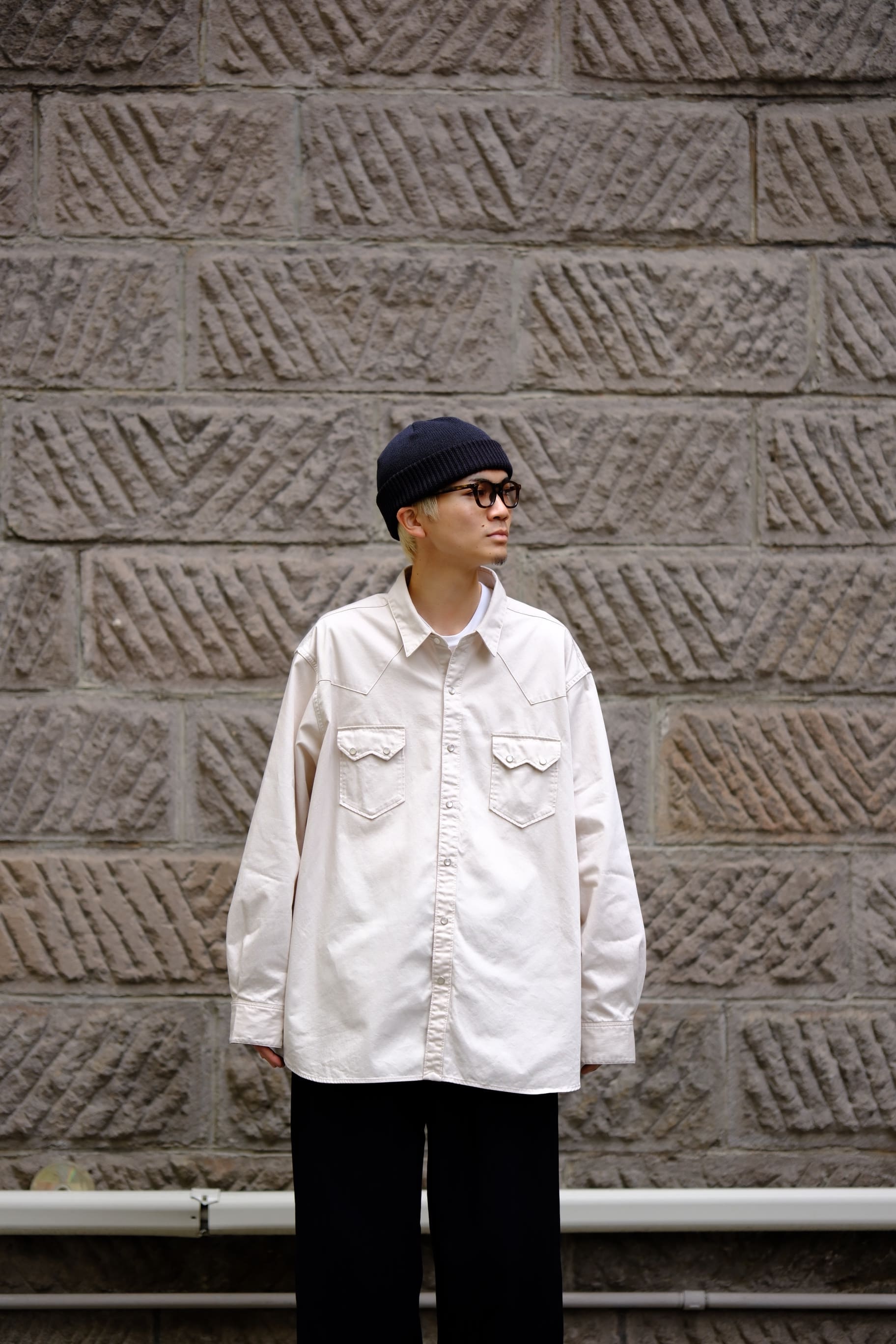 僕はファウンダのカバーオールを購入して既に5回洗いをかけましたが、その姿が別人過ぎて店頭ではそれファウンダですか?そんなカッコ良かったですか?って聞かれる事もあります。それぐらいに変わる、、、それだけのポテンシャルがこのウエスタンシャツにもあるし、それ以外のレギュラーカラーシャツにもある。ファウンダの楽しみ方は買ってからのお楽しみなんです。