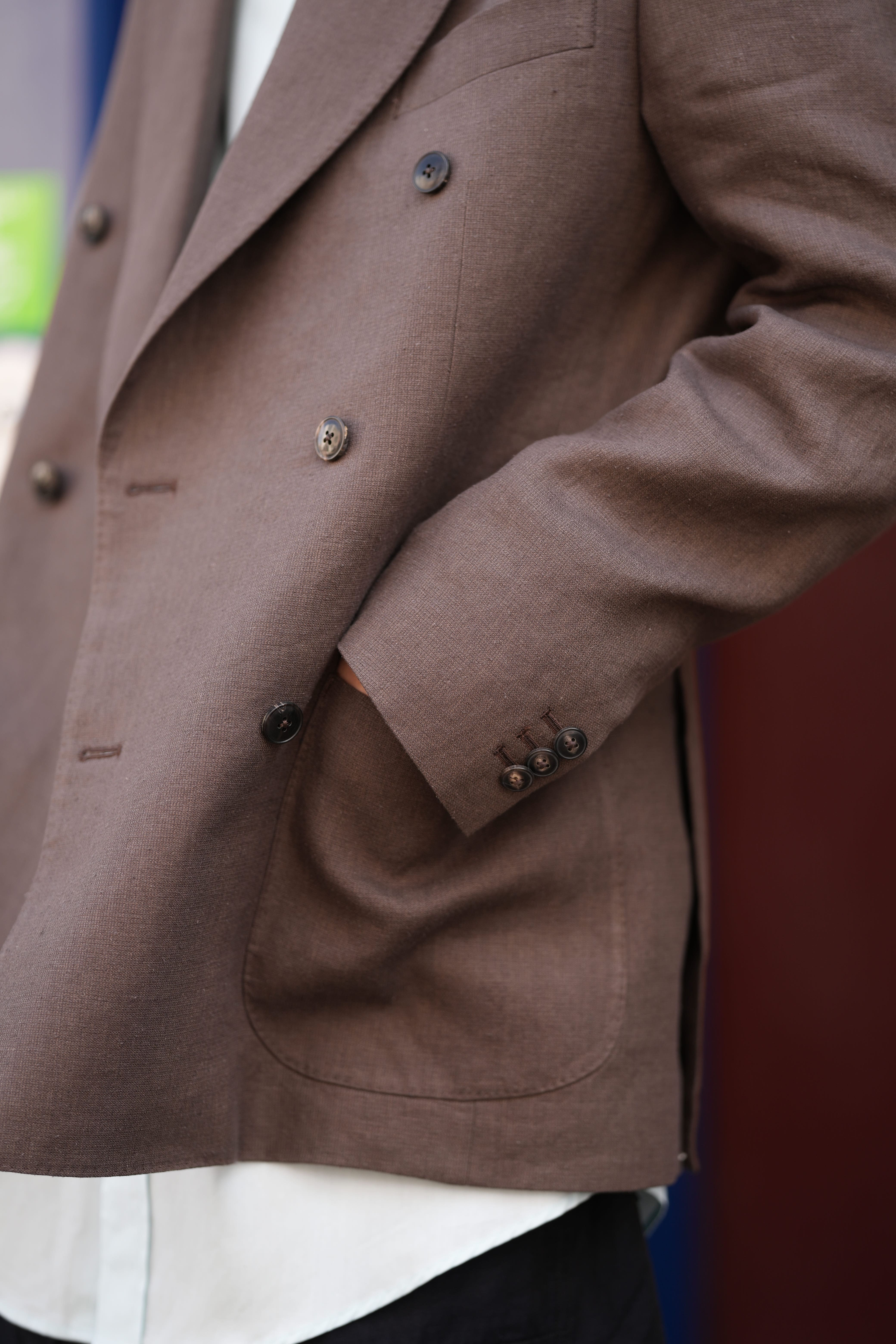 一番大事なのは生地感。コットンだとカジュアル過ぎるし、シルクでも光沢を出す所謂の生地感に仕上げてくるとやり過ぎている感もあります。シアサッカーもキャラじゃないし、先程も挙げたサマーウールなんかは絶対着ないので無い。そう考えた時比較的気を使わない生地であり、クリーニング必須系の生地でもない事が重要。最悪洗濯機のお洒落着モードで洗えるぐらいの生地感がベスト。