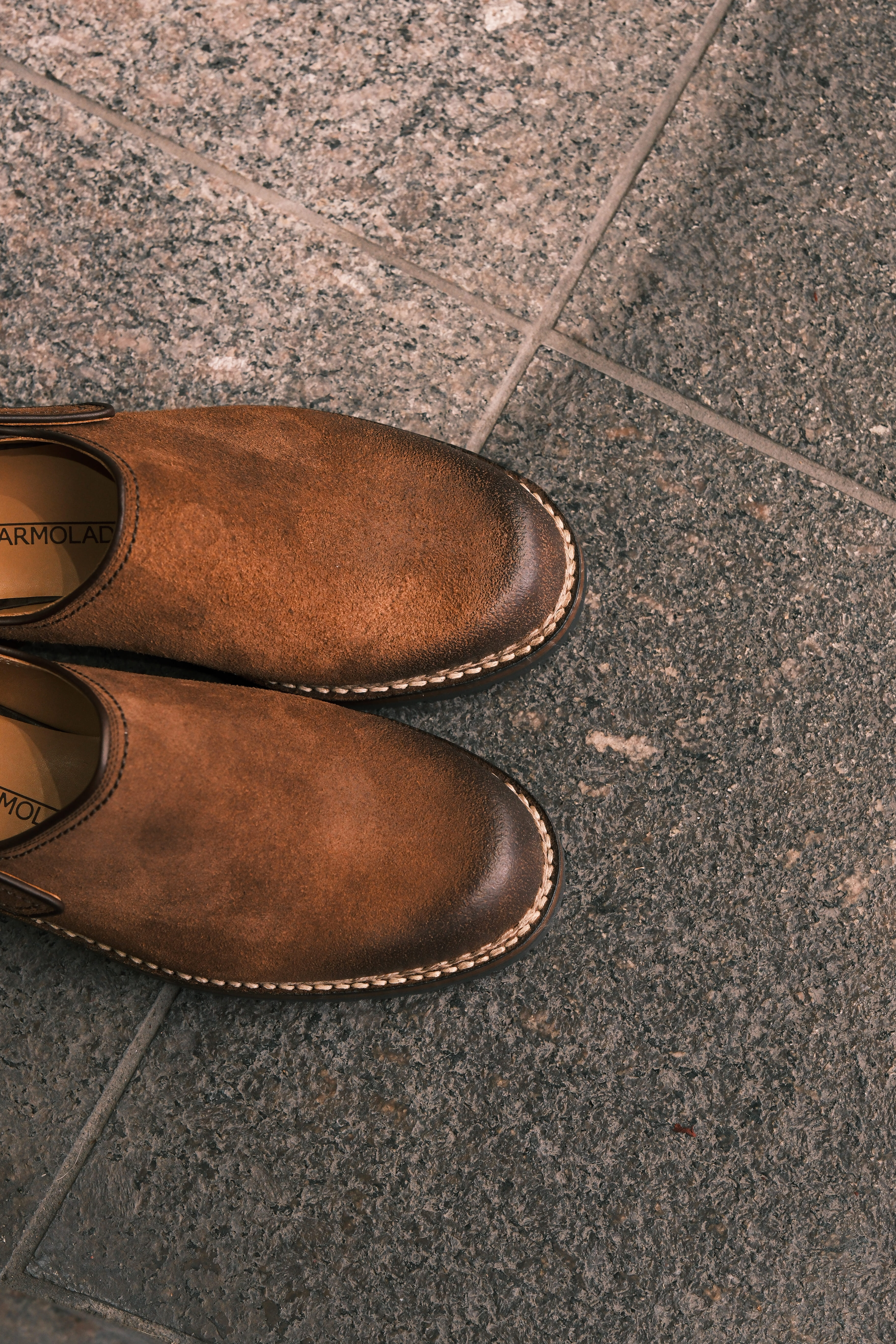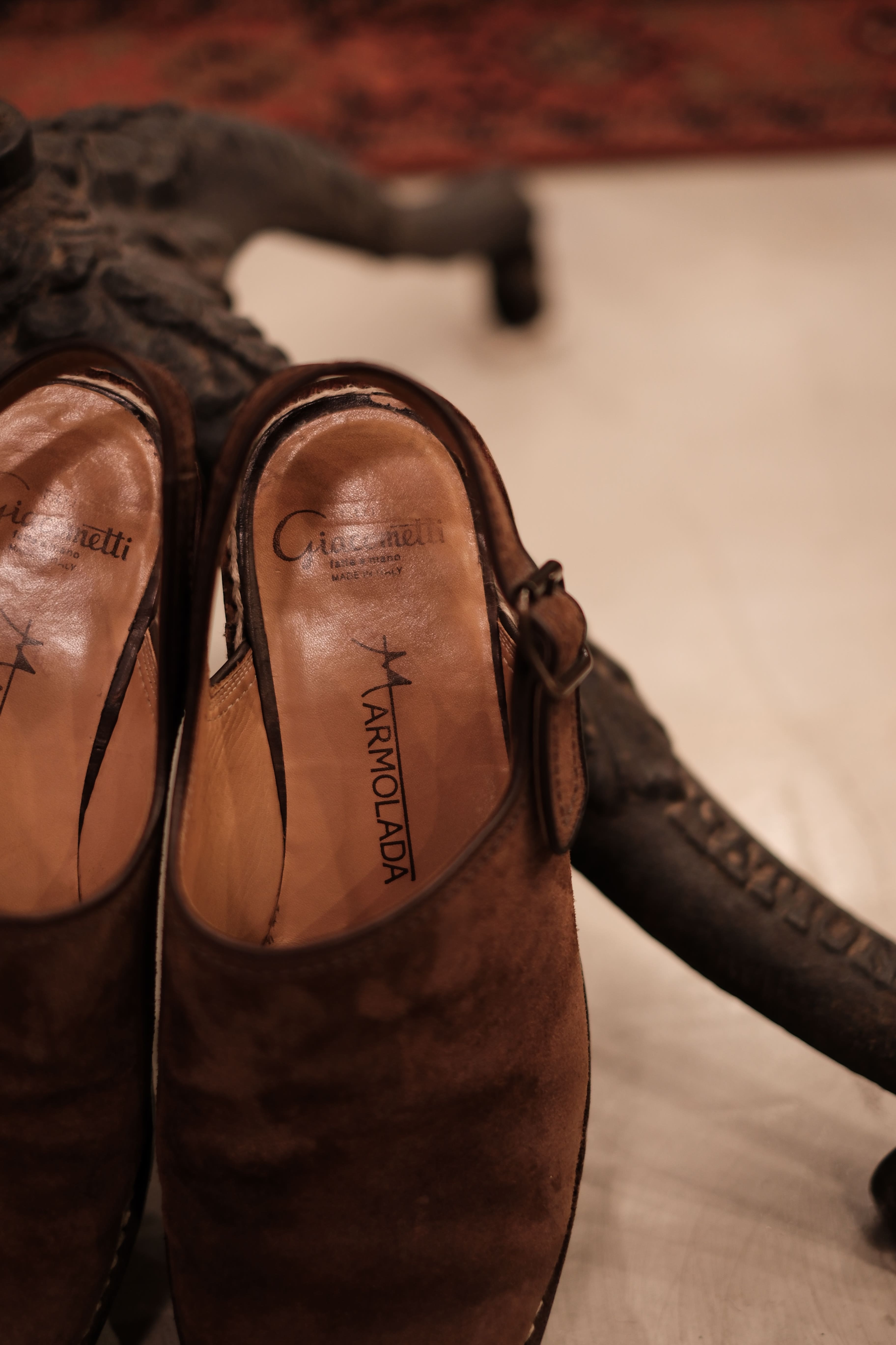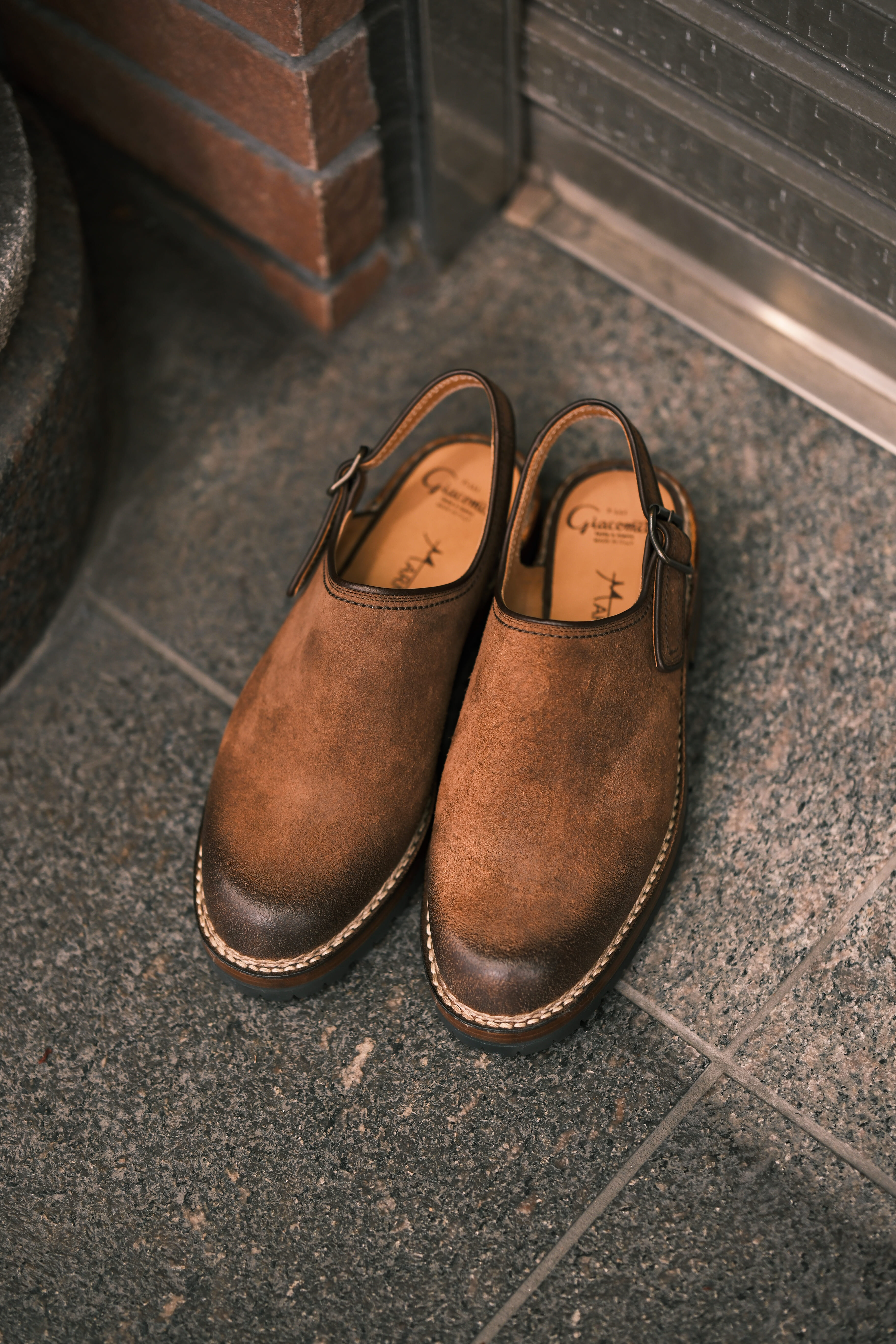 当店ではお馴染みとなり、いつの間にか争奪戦をするような位置付けとなってしまったマルモラーダより今回のGWの為に1番人気のスリングバックタイプよりスウェードのダークブラウンを販売致します。