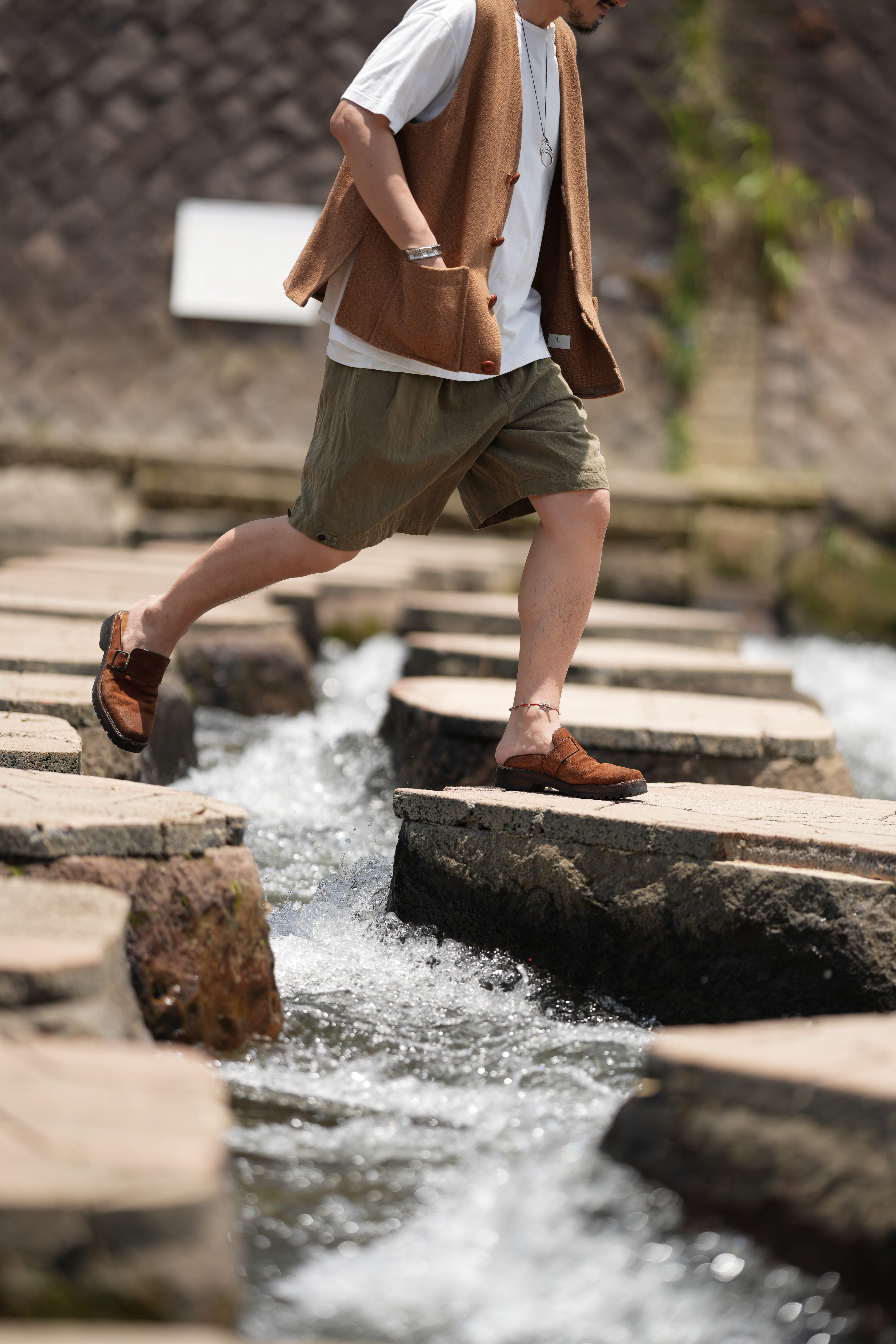 ショーツになる事で当たり前ですが、通気性は抜群に。そしてひんやり感もある。そして洗える。そして味が出る。おまけに型は僕も師匠もパーフェクトだと思っているSHORT TROUSERです。