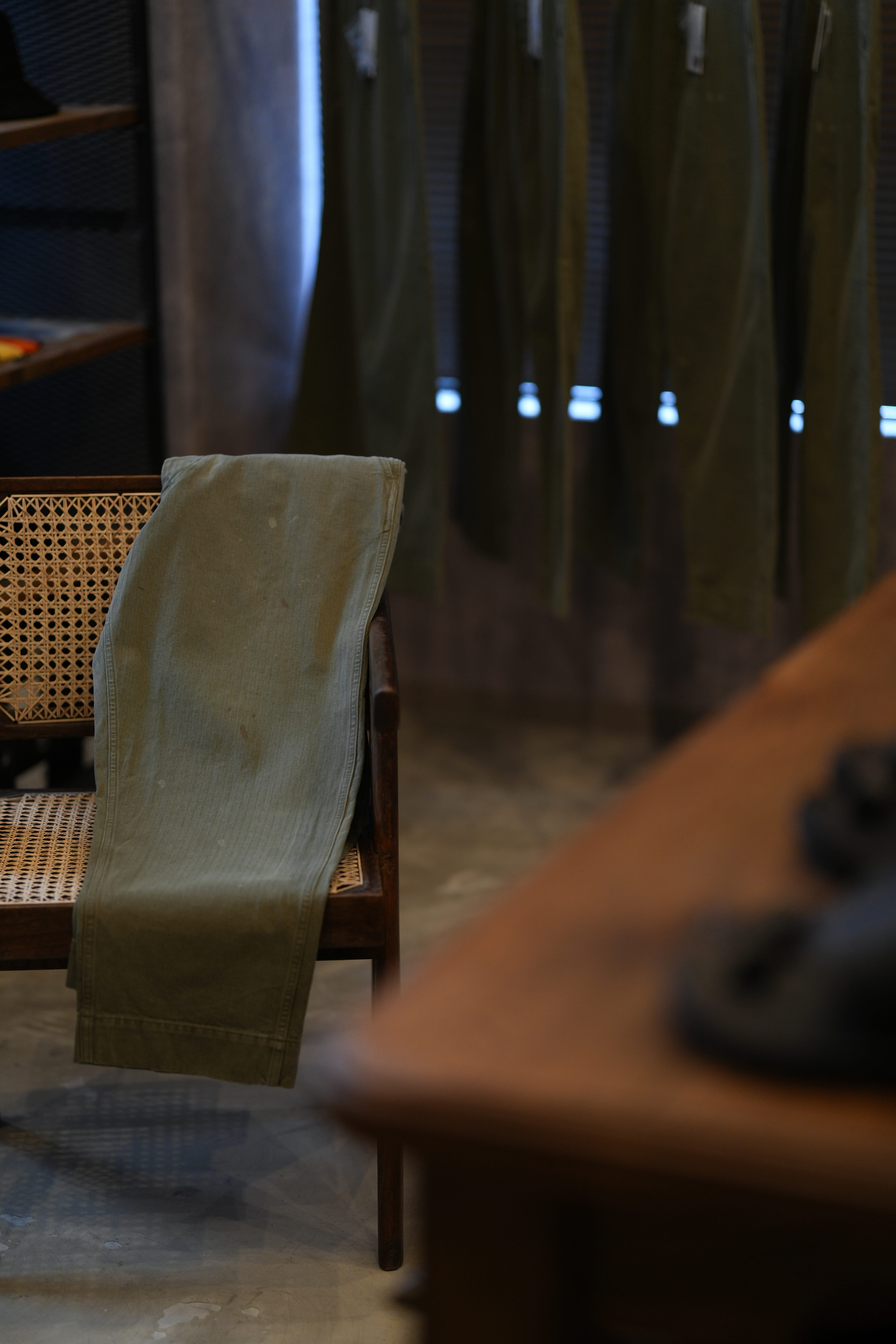 そんなタイミングもあったりで今回入荷のあったUSMCのヘリンボーンパンツも3シーズン目の展開となりますが、店頭で触ったことも見たこともないと言う方も多そうな気がします。いや絶対多いです。インスタを見返す限り入荷日に完売しているので、当店的には伝説のパンツ枠に入っています。