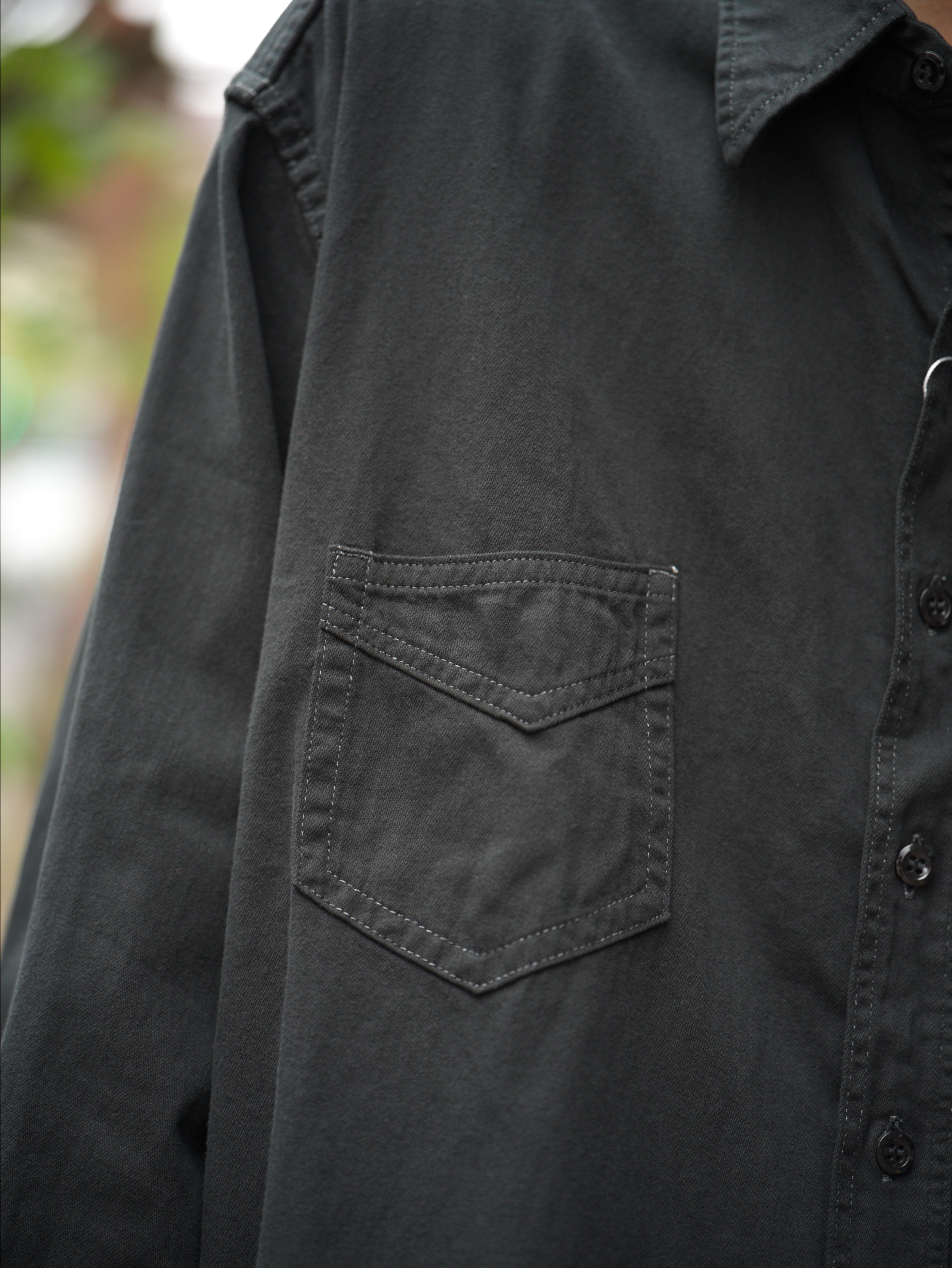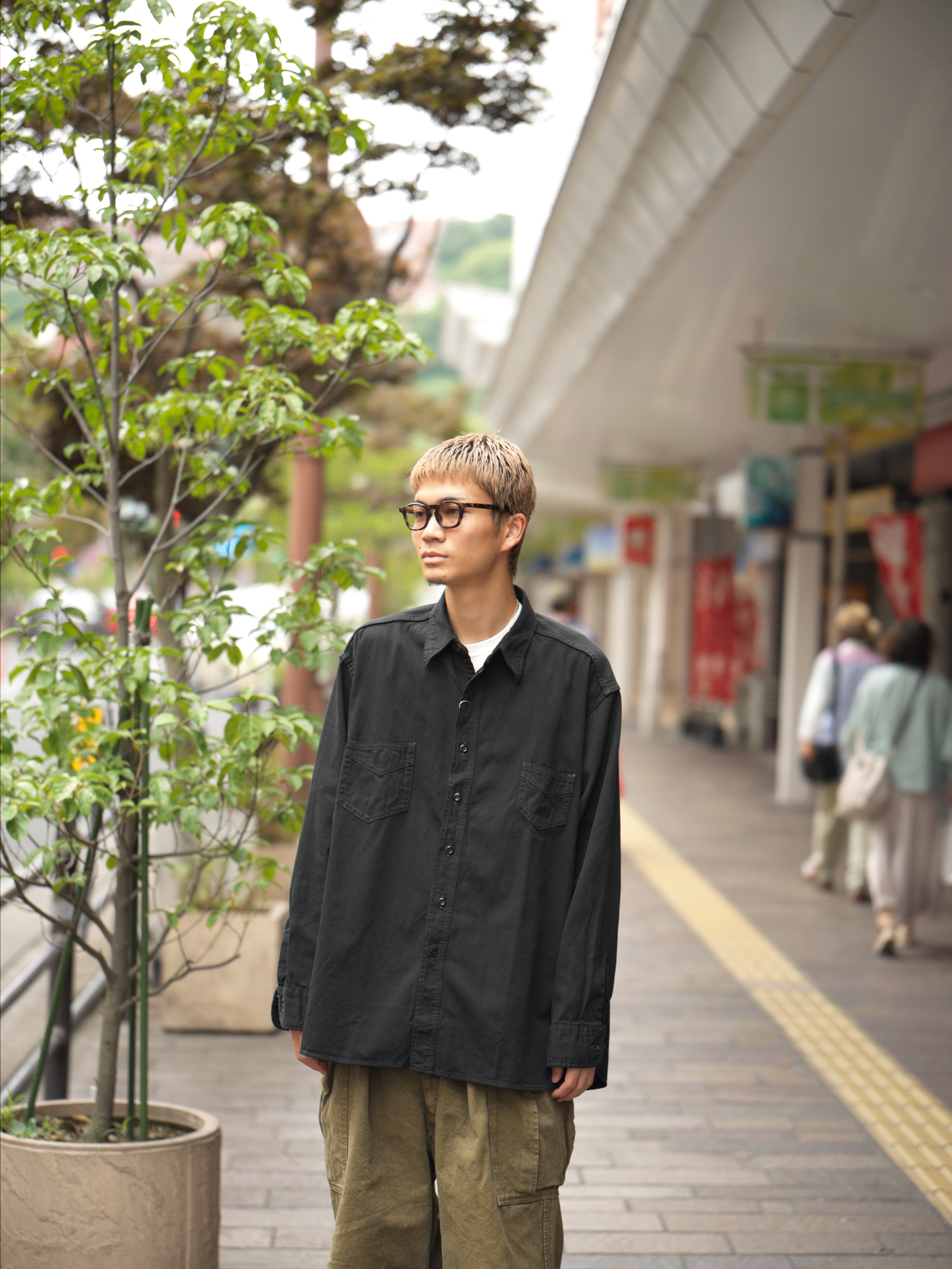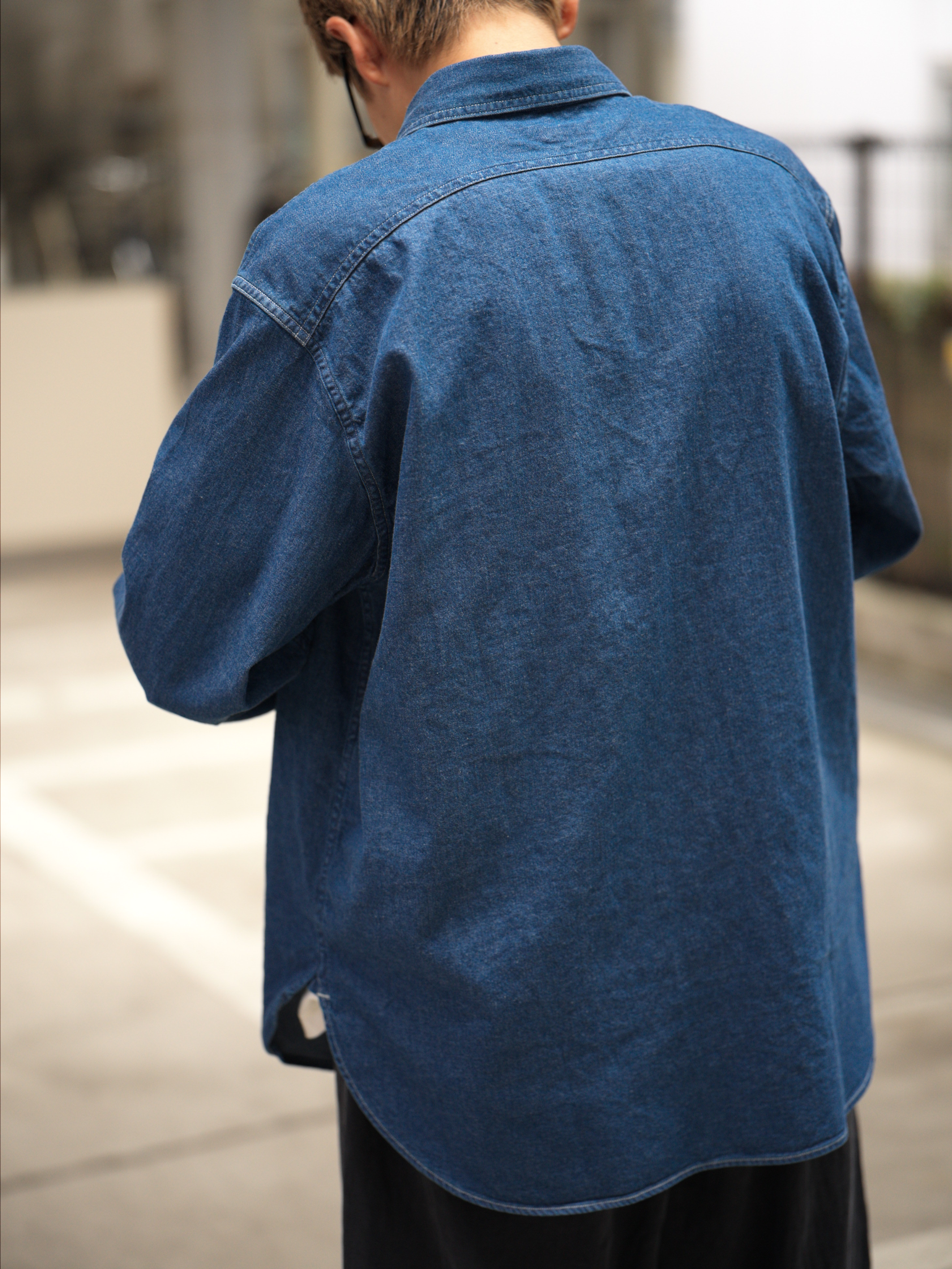 しかし、デニムシャツ、やはりシャツであるという事に大いに意味があると思っていて見た目的にも袖を捲って着ているとそこまで暑さも感じないし、実際に着ていてもめちゃくちゃ暑いなんてこともないです。シャツというアイテムの気軽さもあるので、ついつい手に取ってしまう、、、そんなアイテムだと思います。