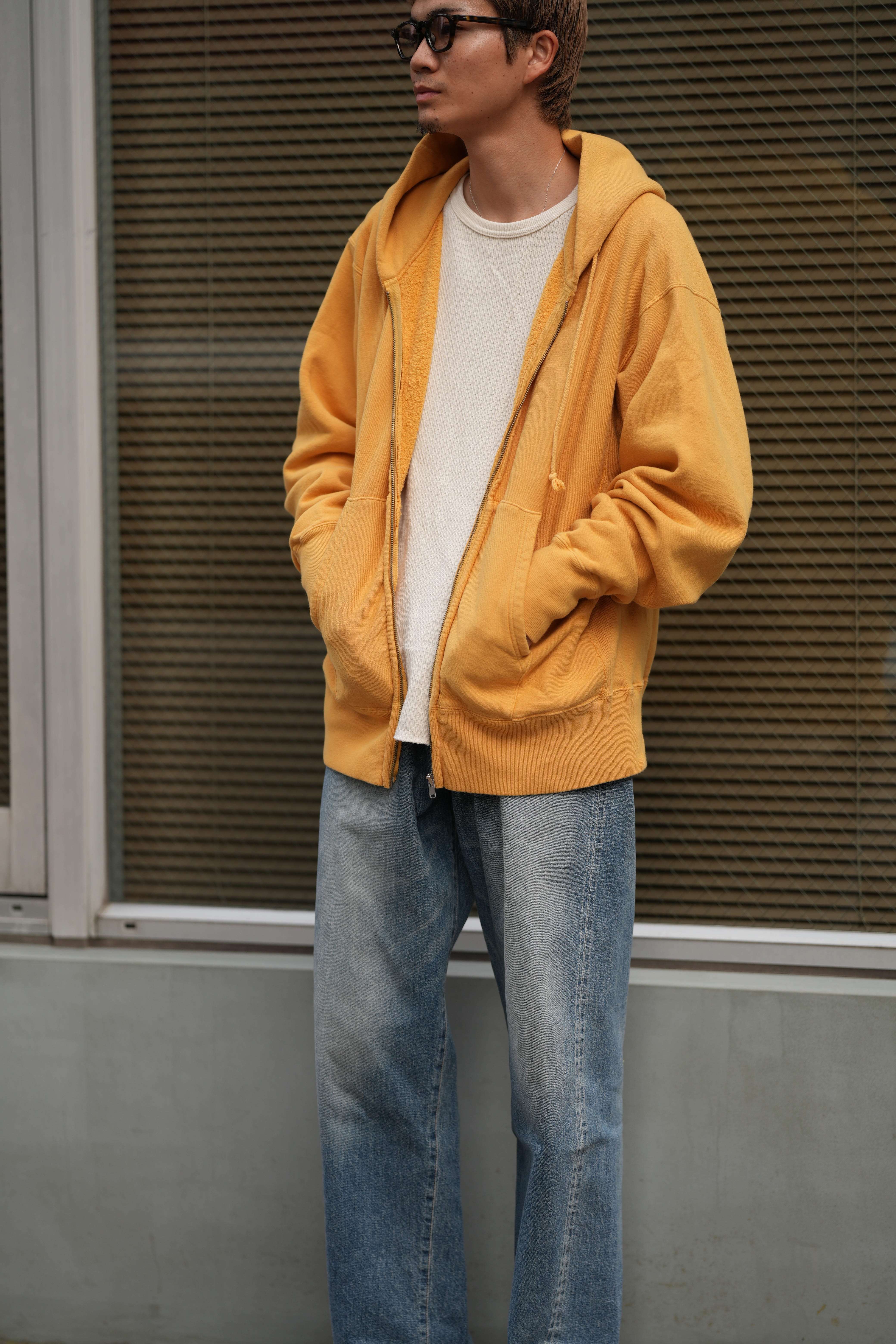 イエローのスウェットは色を少しでもブラすと一気にSALE確定アイテムに降格しますが、最高のフェード感を引き出した大正解の色味に仕上げてきました。