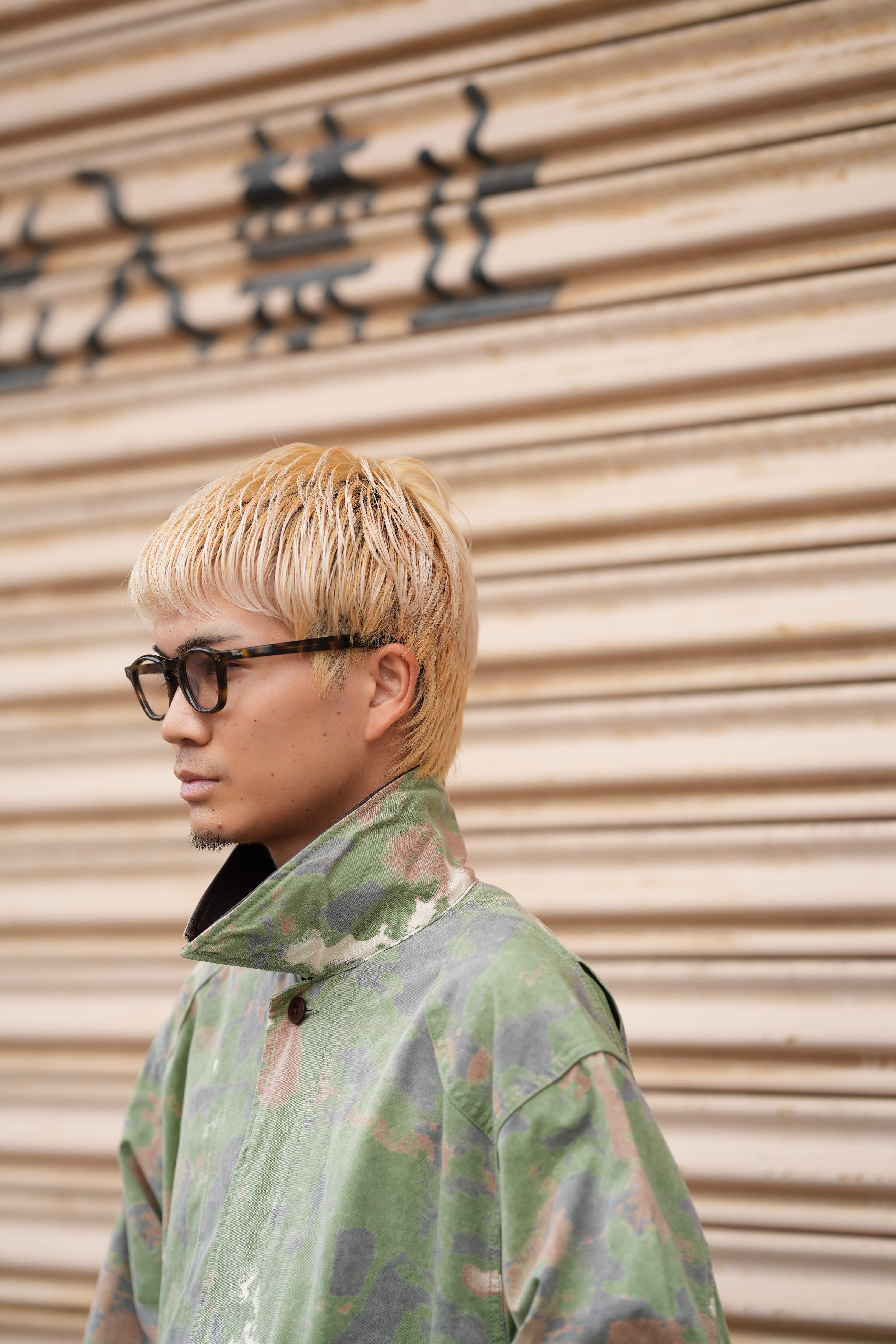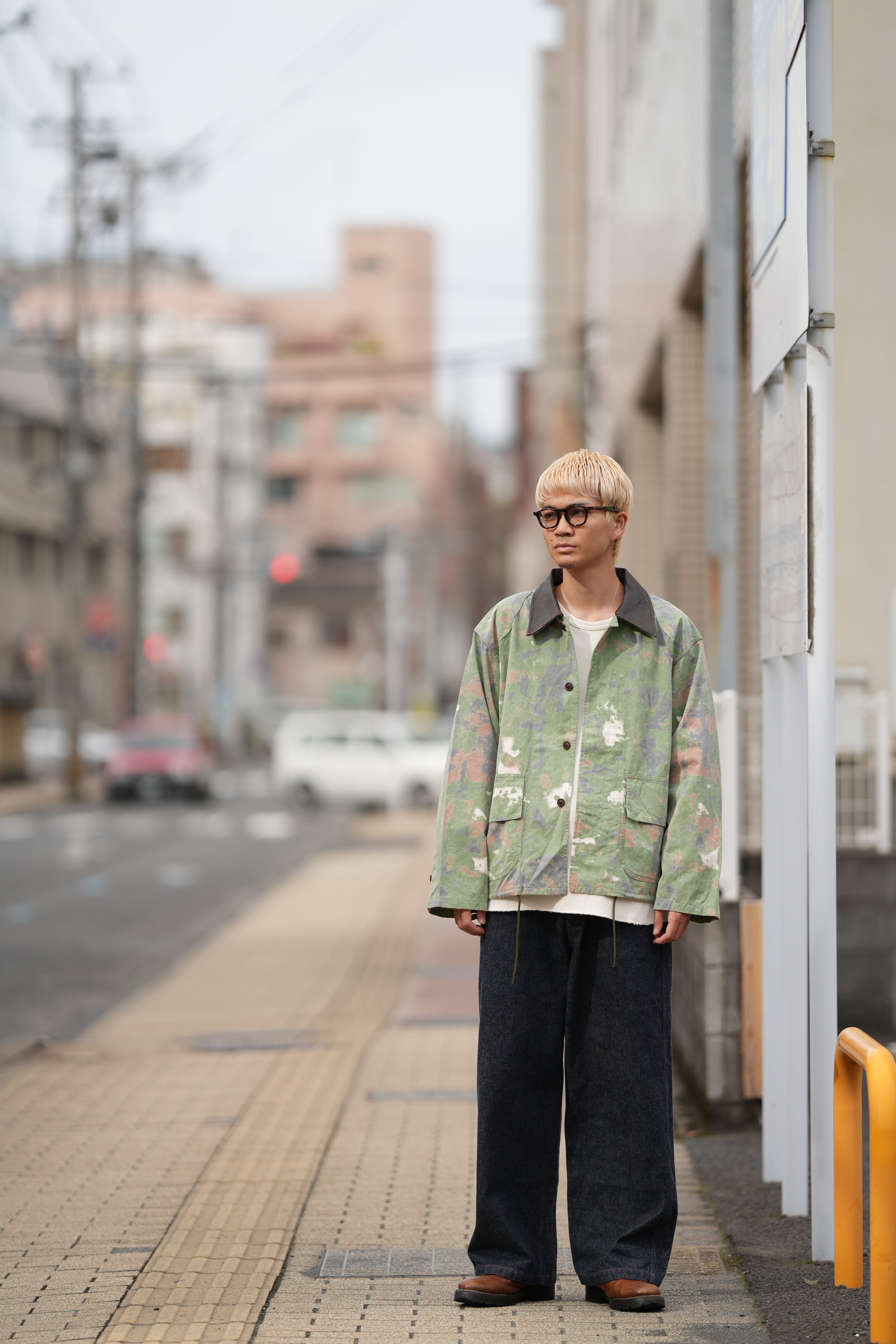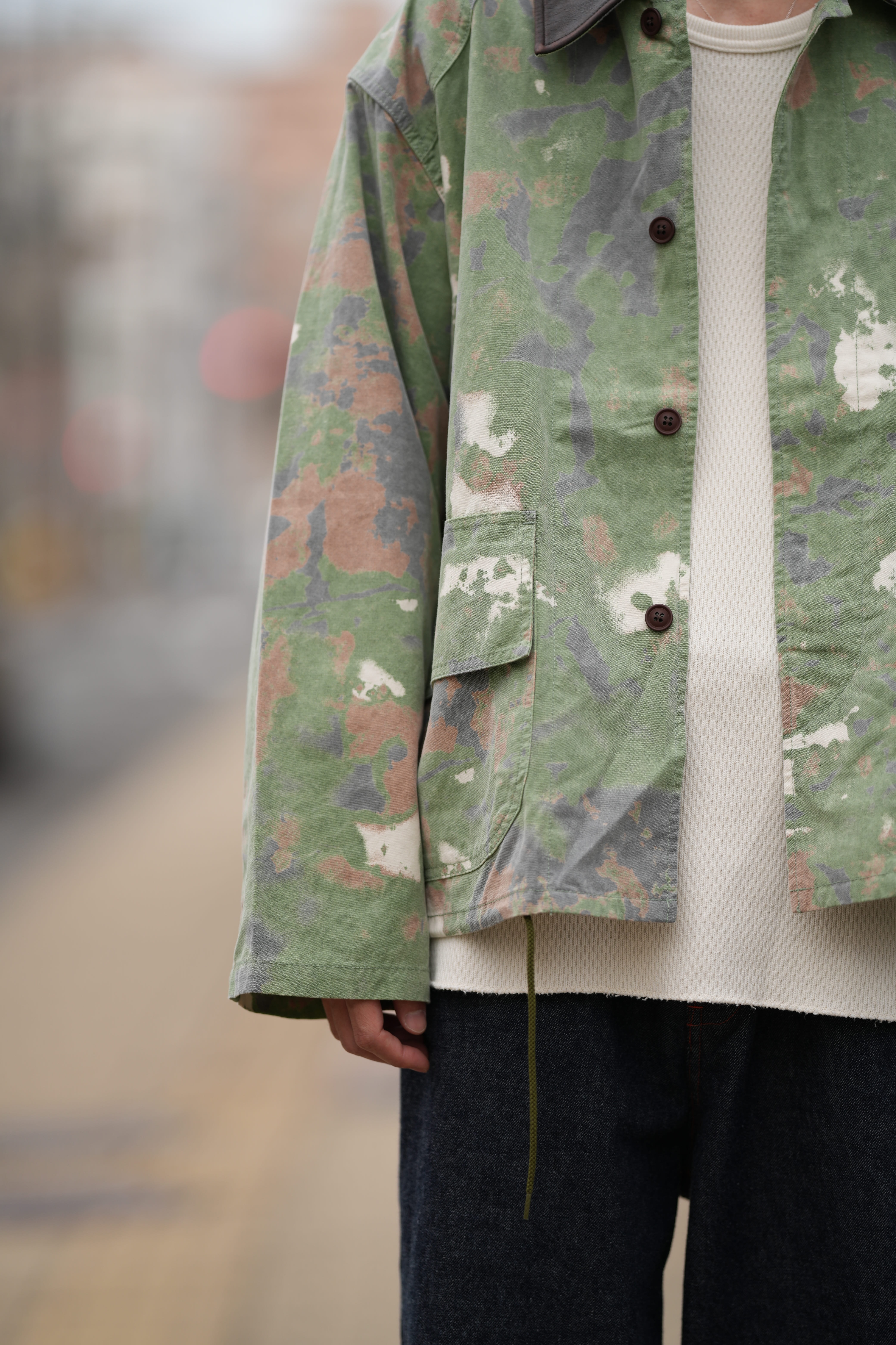 このGurankカモはまず配色が良いです。既にさんフェードしたようなハードな加工により何十年の着こまれたようなグリーンと生成り、ブラック、ライトブラウンから構築されていてどのカラーをとってもスタイリングに馴染むで色である。そしてそれがカモ柄となっても変わることはボトムとの相性が最大の難関とされているカモでありながら、何にでも合ってしまう、、、カモでありながら合わせやすいカモであるという事がこのGurankのカモジャケットの凄みです。