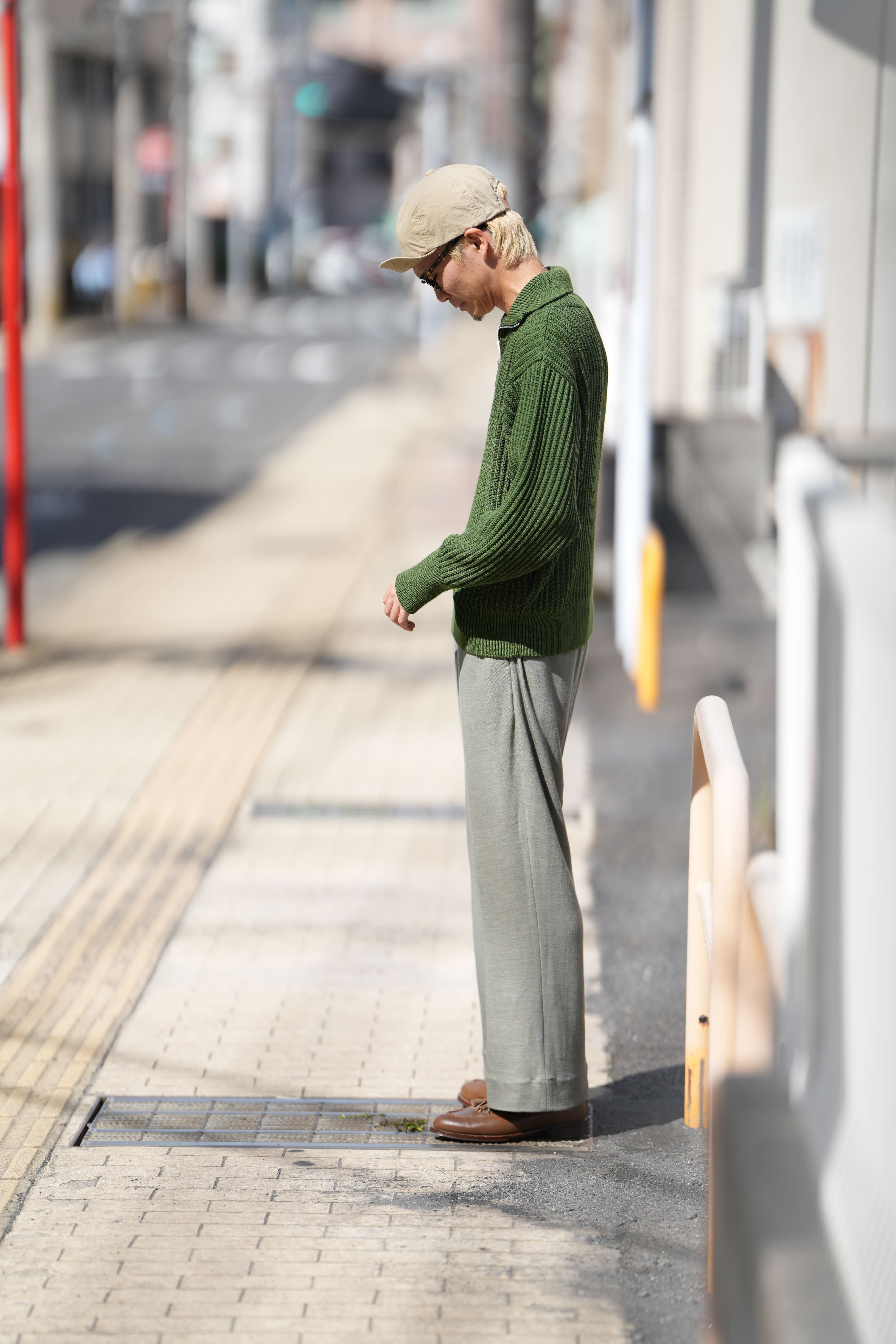 ニット:Olde H & Daughter(オールドエイチアンドドーター) 25AW “TWIST WOOL HALF ZIP NECK P/O” -MOSS- ¥86,900-(intax) 着用サイズ10