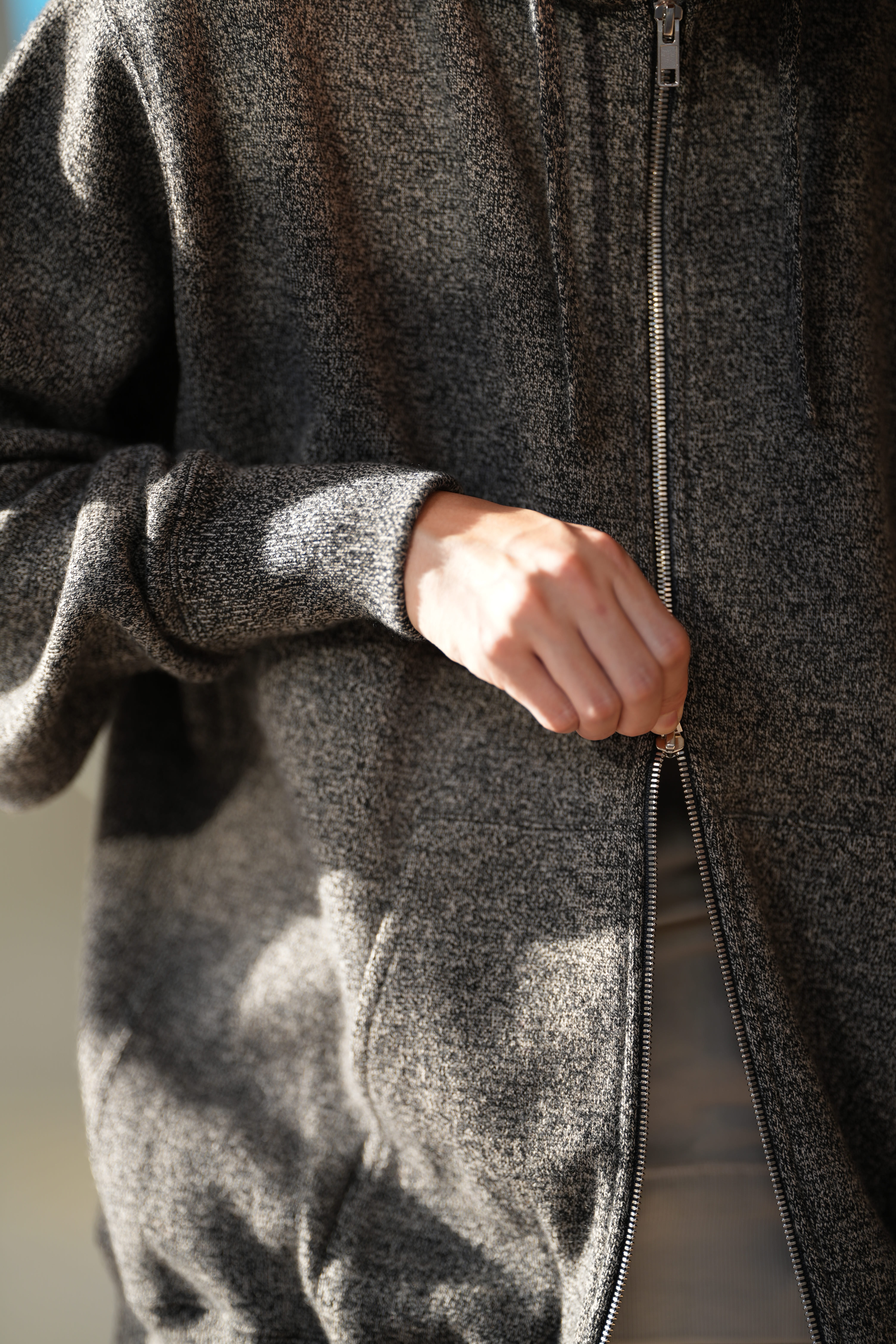 今回のGRAYは杢の色味がとても良いなと思っていて、ナチュラルとブラックの糸から構成されているから、ブラウン、オリーブ系にはめても良いし、ブラックでまとめてもしっくりくるんですよね。