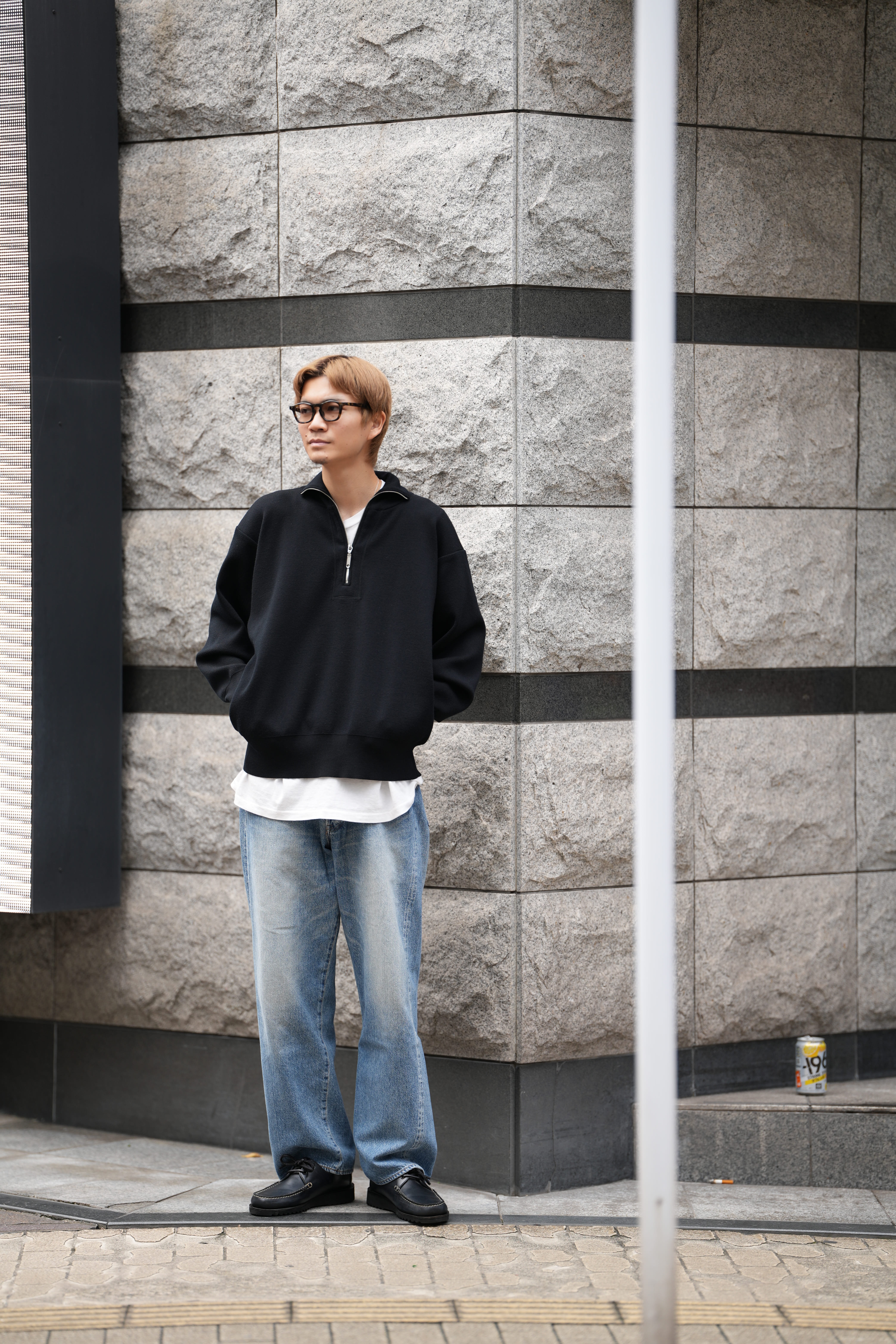 僕は昔からハーフジップが大好きです。首元にジップがあるだけで何故こんなにも洒落た雰囲気になるんだろうと思います。